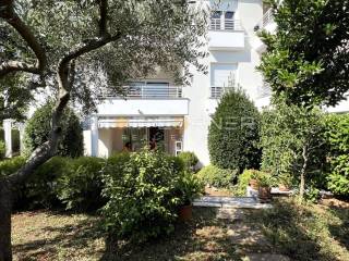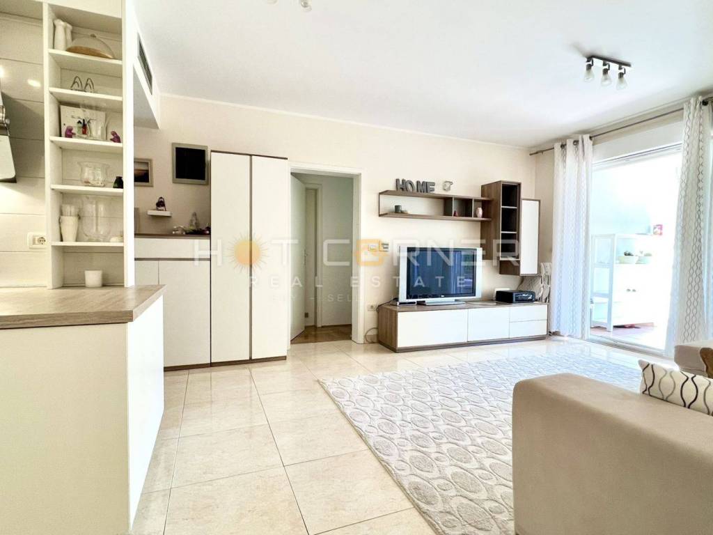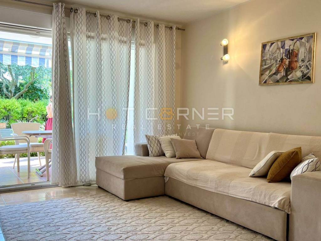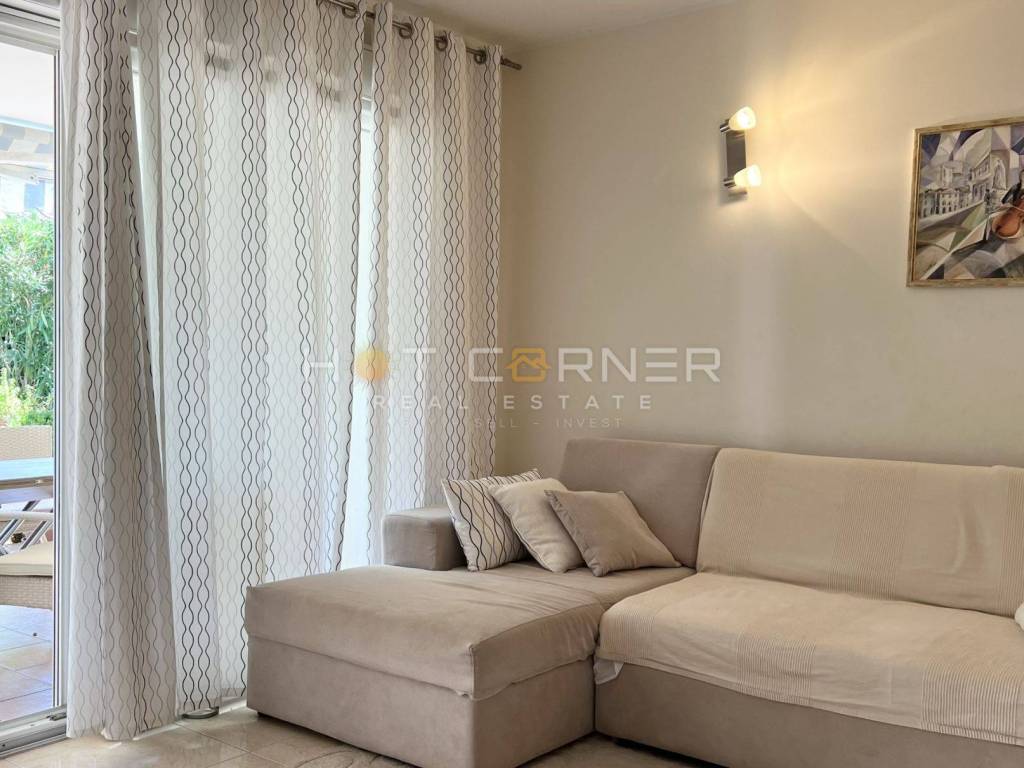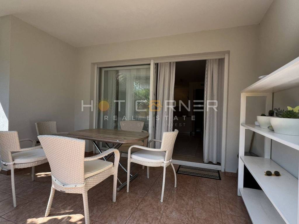 In a peaceful and well-maintained setting, for sale is a ground-floor apartment, with a total area of 127.25 m², offering everything needed for comfortable living or a premium holiday home. The apartment consists of a spacious living room connected to a modern kitchen, two comfortable bedrooms, two bathrooms, an additional toilet, and a storage room.