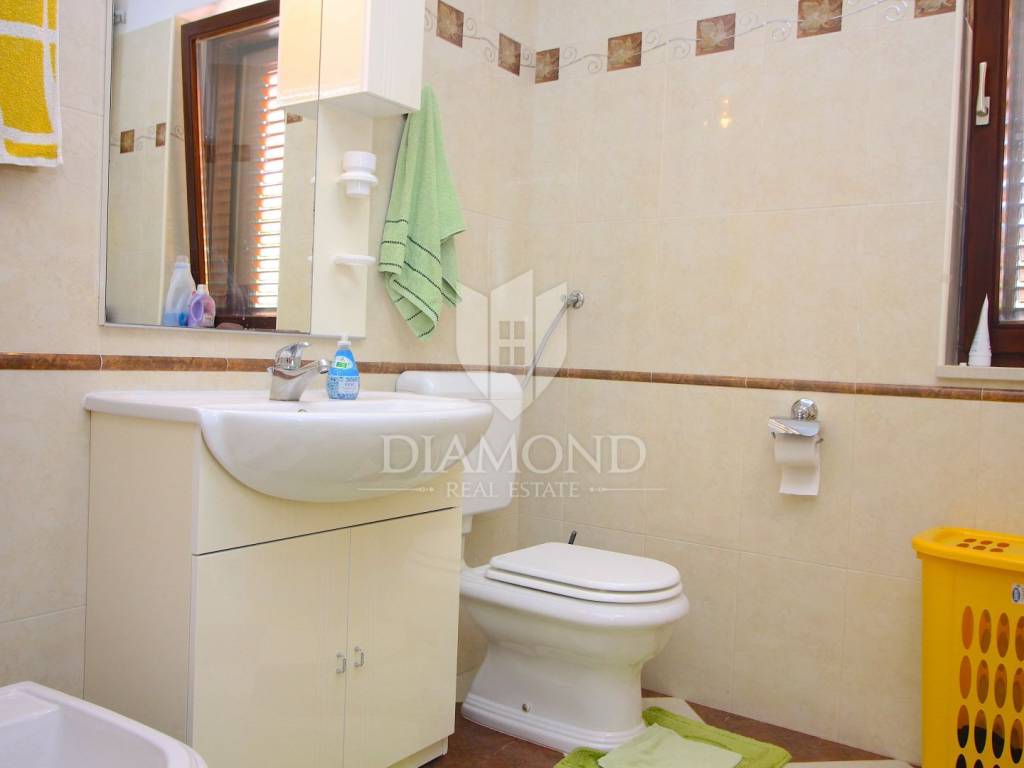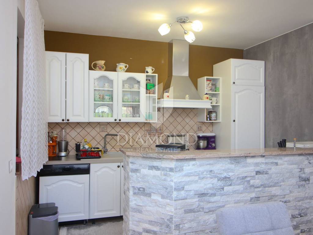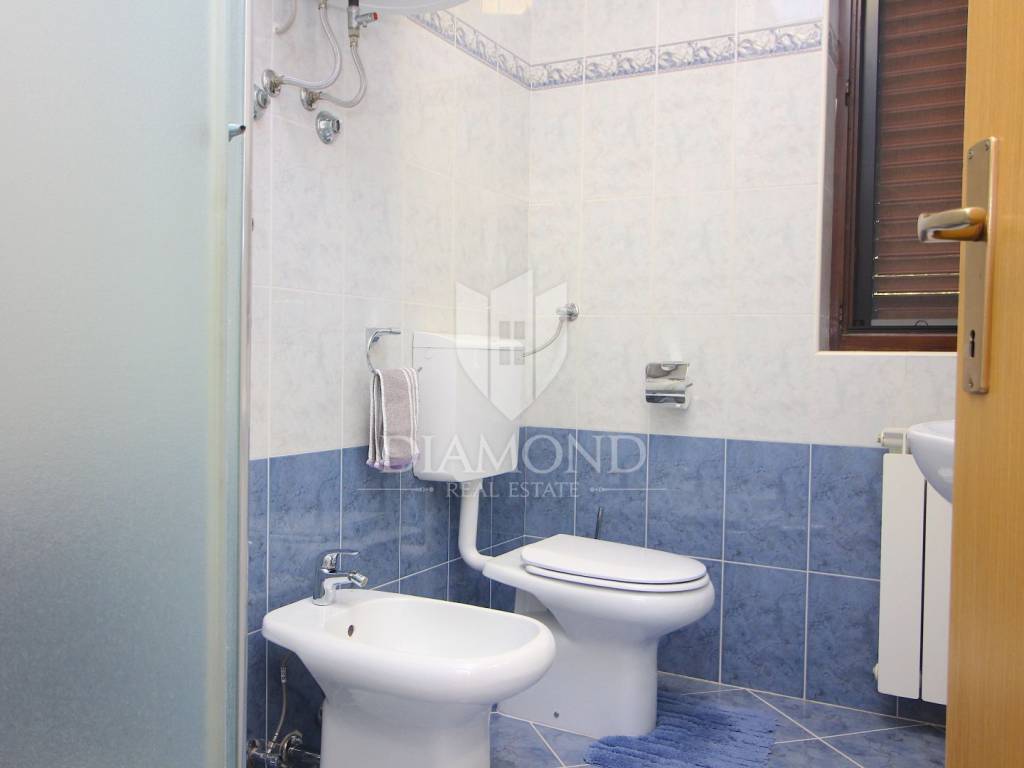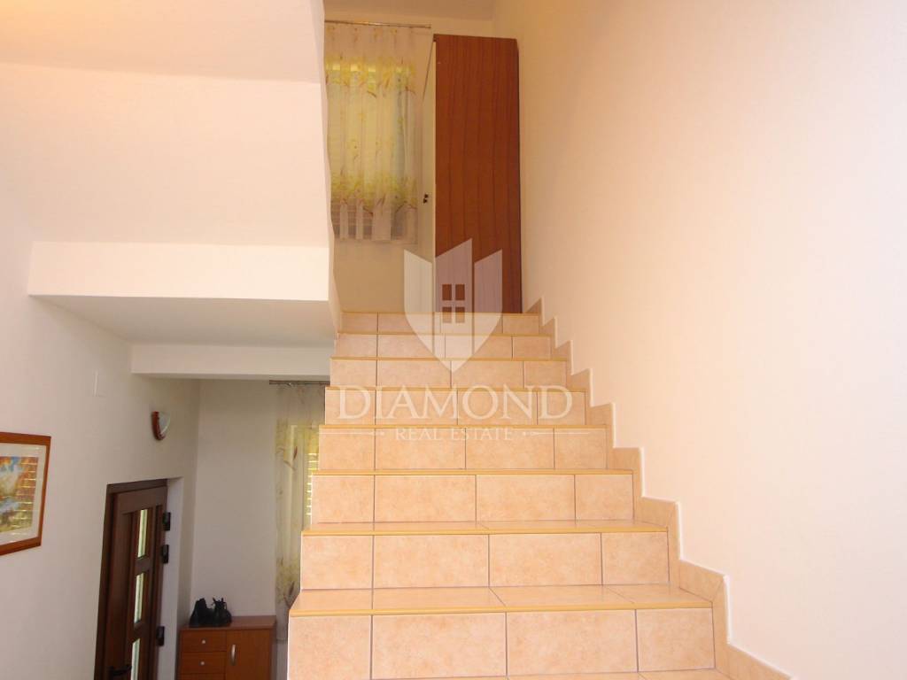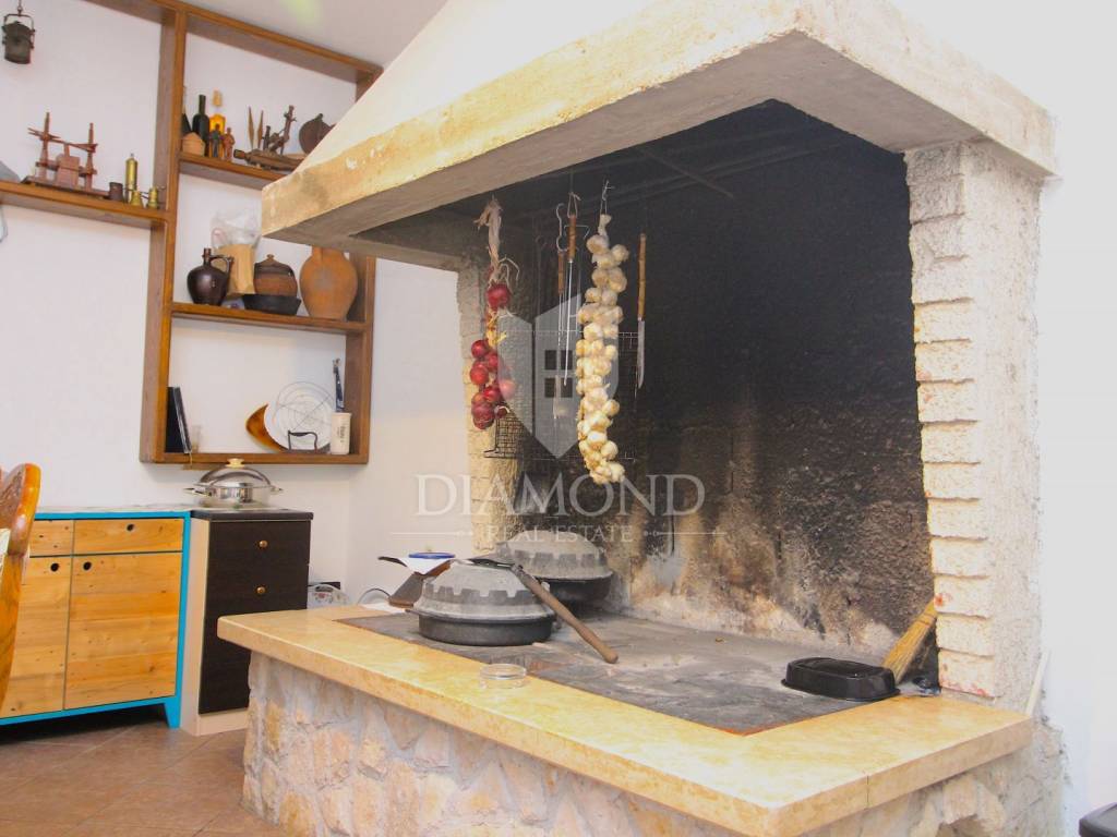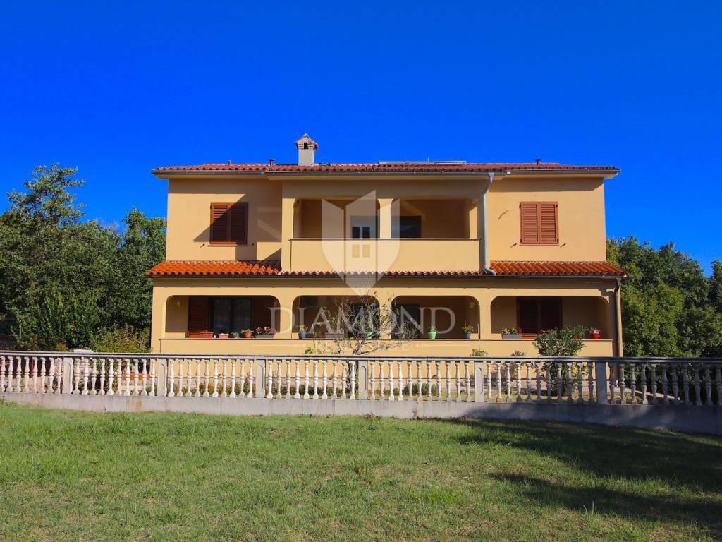 In Labin, a small town located on the eastern coast of Istria, on a hill 320 meters high just three kilometers from the sea, is located this beautiful house with four apartments. On the ground floor there is a tavern with a fireplace and a kitchen, and two apartments that are unfinished. On the first floor there is a fully equipped and furnished three bedroom apartment of 155 square meters, with a beautiful kitchen, dining room and two bathrooms. The living room opens onto a large covered terrace. The apartment is air conditioned and has central heating on wood. On the second floor there is another such apartment, which is also unfinished and needs to be arranged. On a plot of 688 square meters, which is immaculately arranged and maintained, there is a large parking lot. Nearby are all the facilities needed for everyday life. Given the location, this property has the potential both for a quiet family life and for a return on investment through a tourist rent.