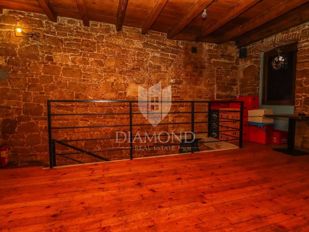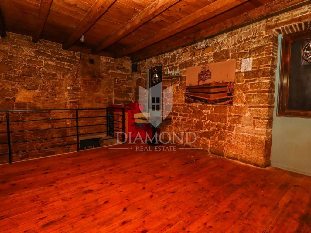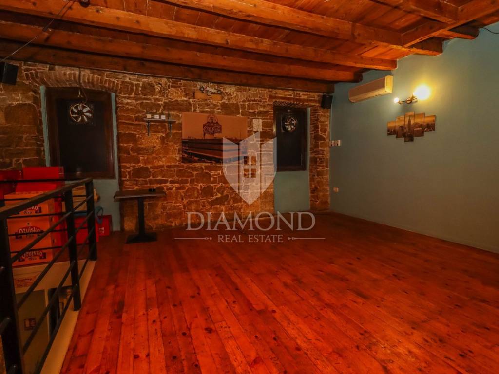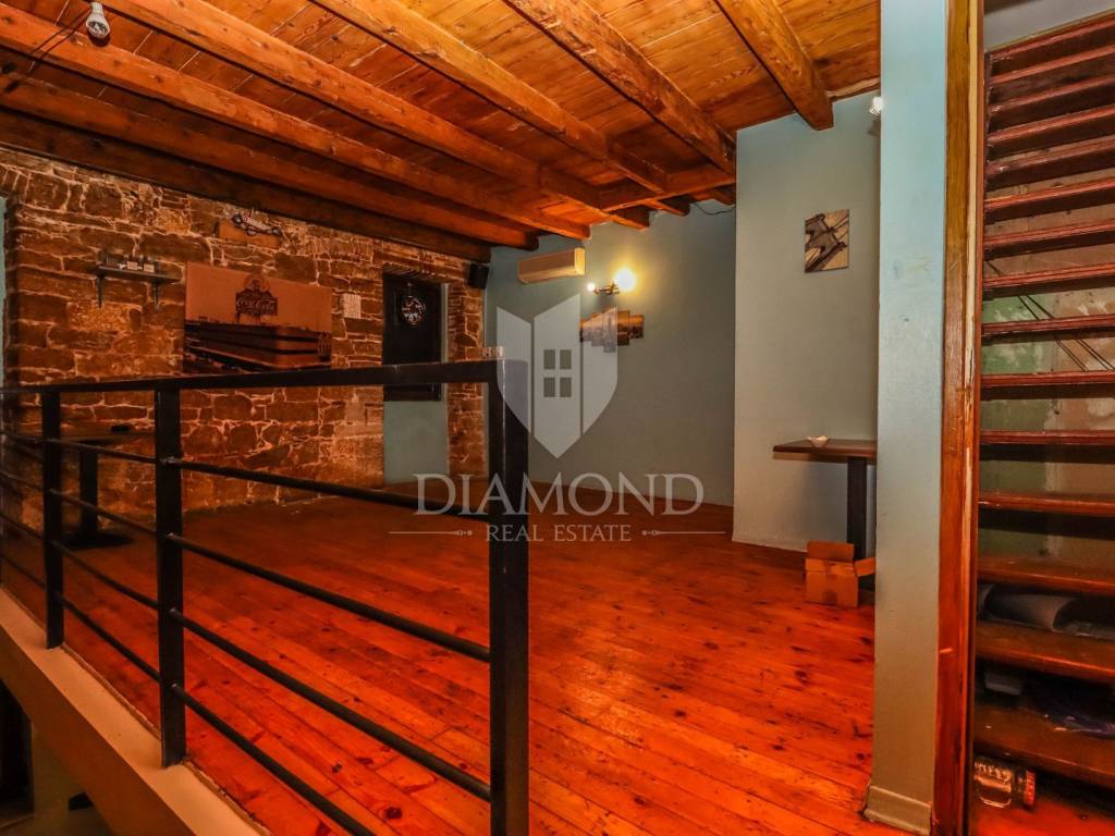 Ovaj poslovni prostor se proteže na tri etaže, prizemlje, kat i visoko potkrovlje, te je veličine 87m2. U prizemlju se nalazi šank i sala za goste, te mala ostava. Na katu je još jedna sala i sanitarni čvor, dok je u potkrovlju smještena jedna soba i kupaonica. Prostorije su vrlo prostrane i lijepo uređene, te je iskorišten kamen kojim je građena kuća, kako bi se zadržao autohtoni stil starogradske gradnje. Kako je to nekada bio stan sa tri spavaće sobe, ima mogućnosti i potencijala za prenamjenu u stambenu jedinicu.