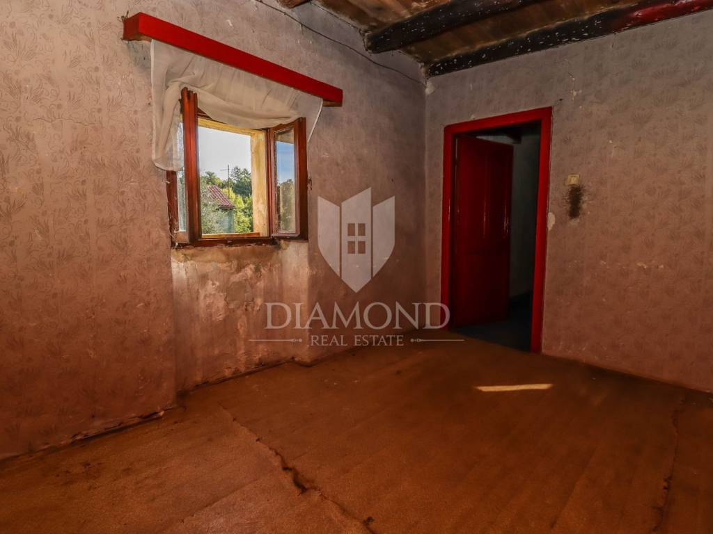 The residential house is spread over two floors, ground floor and first floor. On the ground floor, there are two rooms that used to be used as storage rooms, and there is also an exit to the rear closed yard. Upstairs is an apartment consisting of a hallway, kitchen, three bedrooms and one room that was used as a living room, from which you can go to the attic, which due to the high ceiling could become another large room or any other room as desired by the future owner. owner. There is also a cistern next to the house. Next to the house is a small tavern with a fireplace, and an outdoor covered parking lot. Across the street from the residential house is a crumbling barn, and a small separate house that served as a storage room for animals.