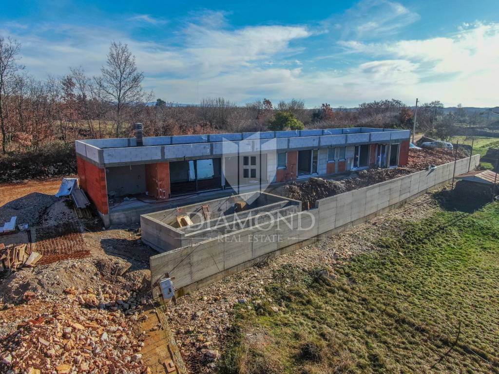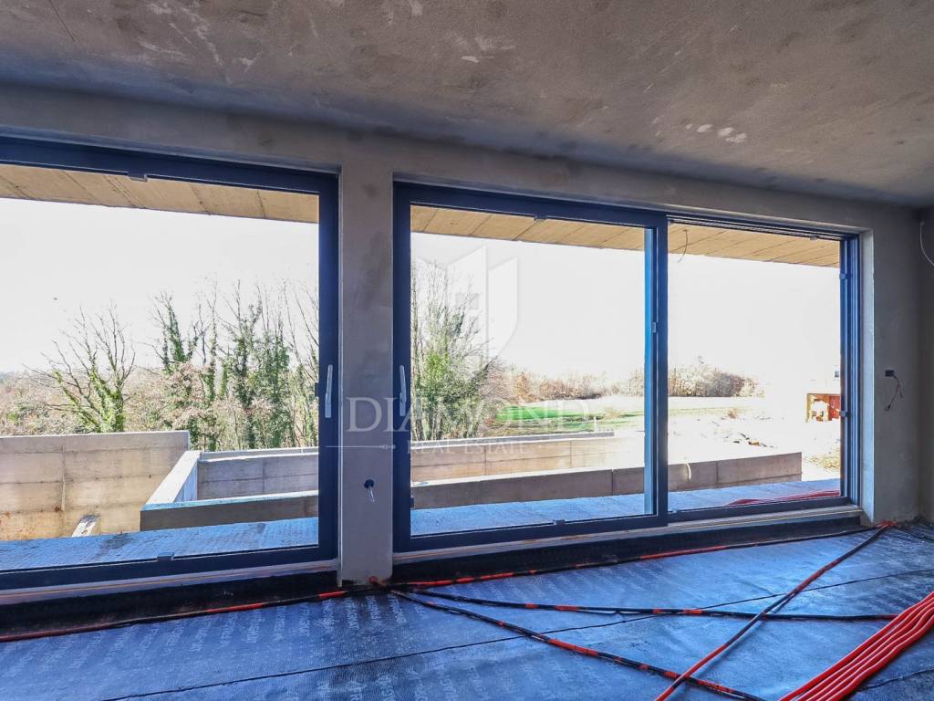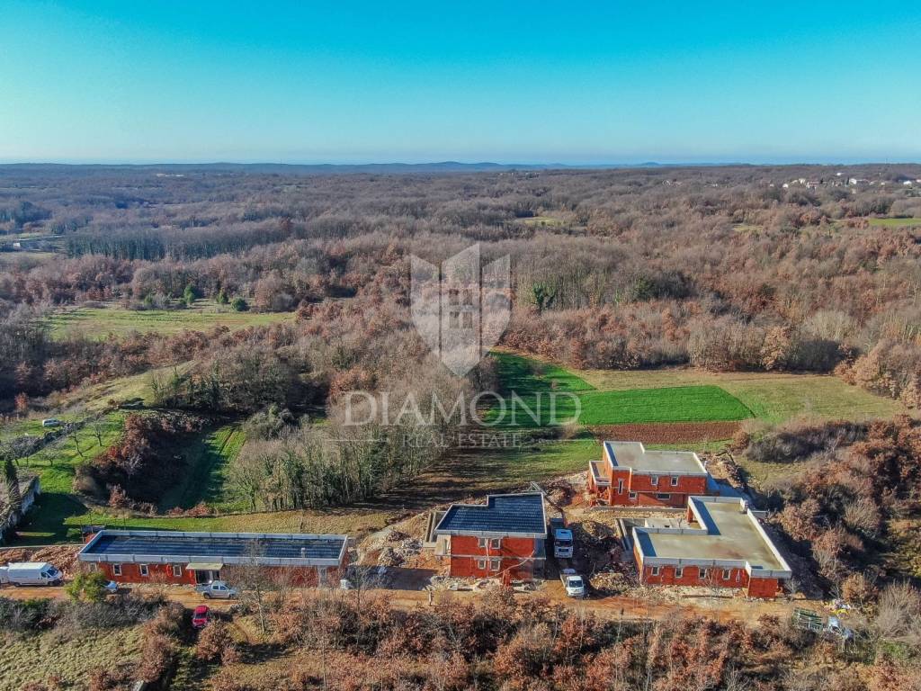 not far from the famous medieval town of Svetvinčenta, in a charming small town, we are selling this new house for living and vacationing. This house is one of a few new houses that are located on the edge of the village and are surrounded by greenery and nature, and therefore provide a great level of privacy and peace. All content is located within a short distance by car to Svetvinčent, which is full of them.