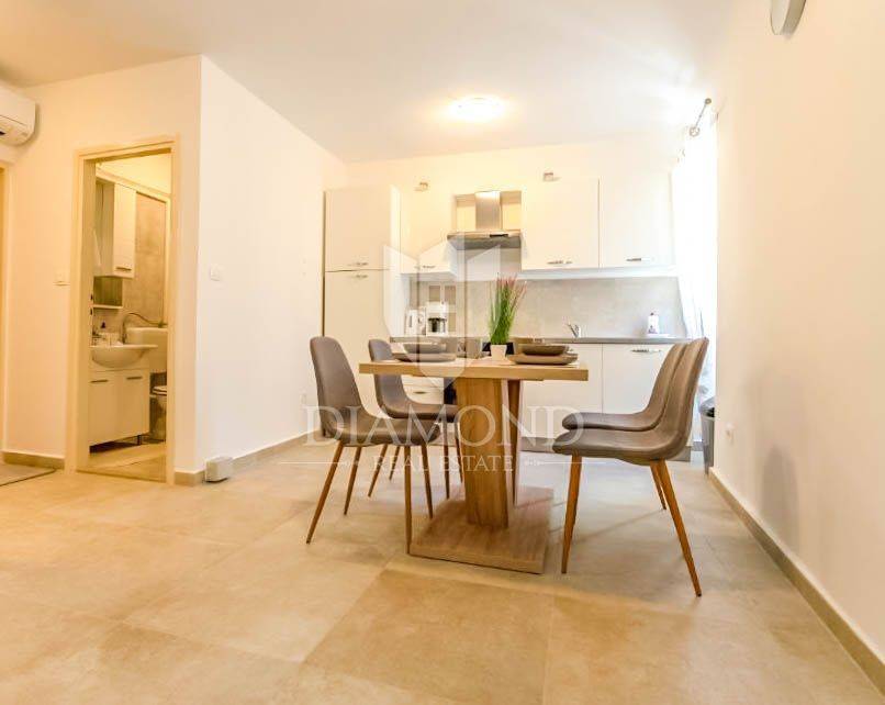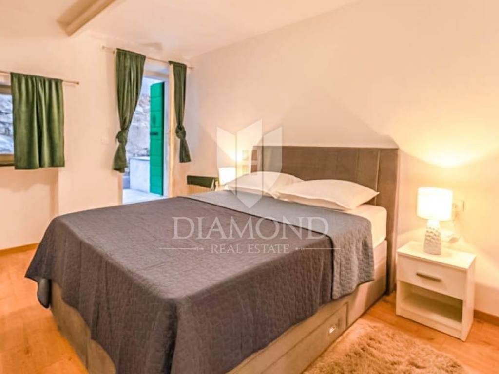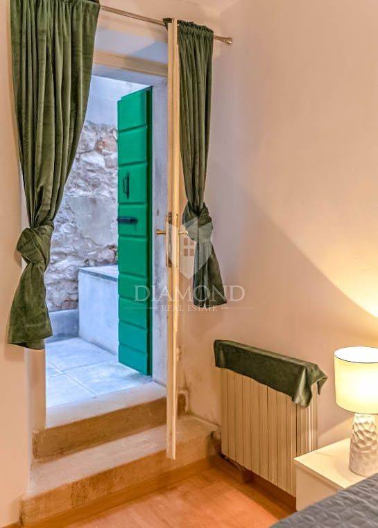This apartment is situated on the first floor of a renovated historic building and has a total area of 75 square meters. It consists of a living room, kitchen and dining area, bathroom, storage room, and a bedroom that leads to a charming terrace, which is a significant bonus in Rovinj. The apartment was completely renovated last year and requires no additional investment.