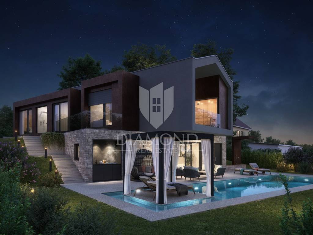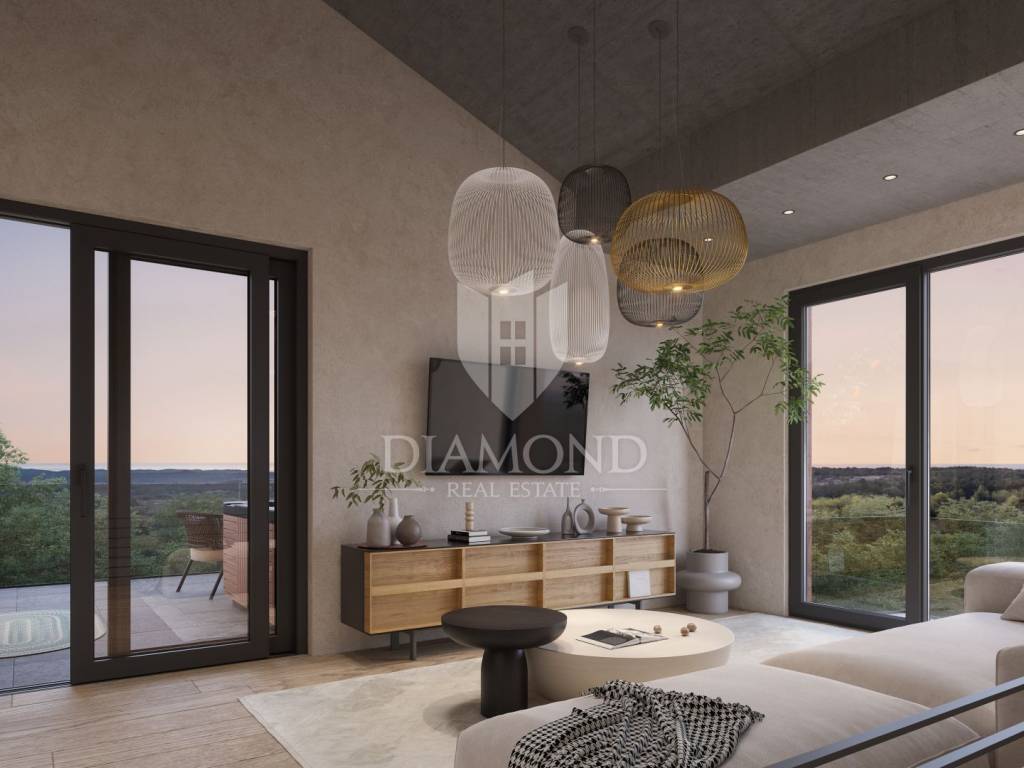 A modern designer villa under construction with a wellness, swimming pool and sea view in the vicinity of Porec is for sale.