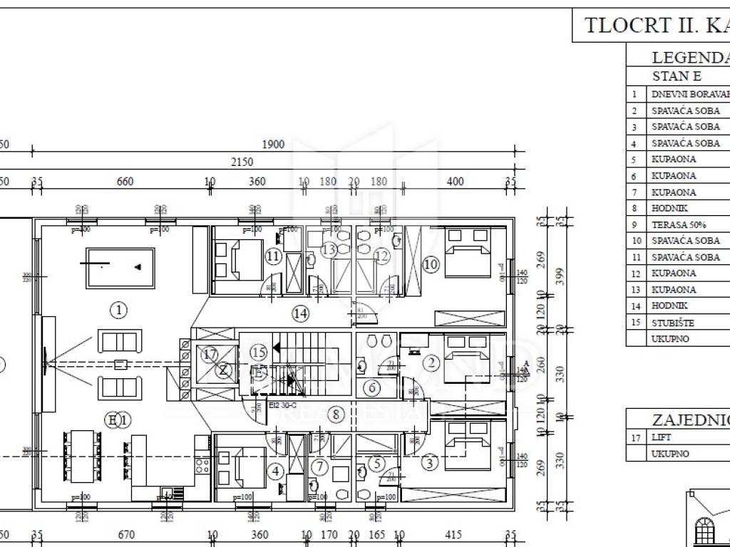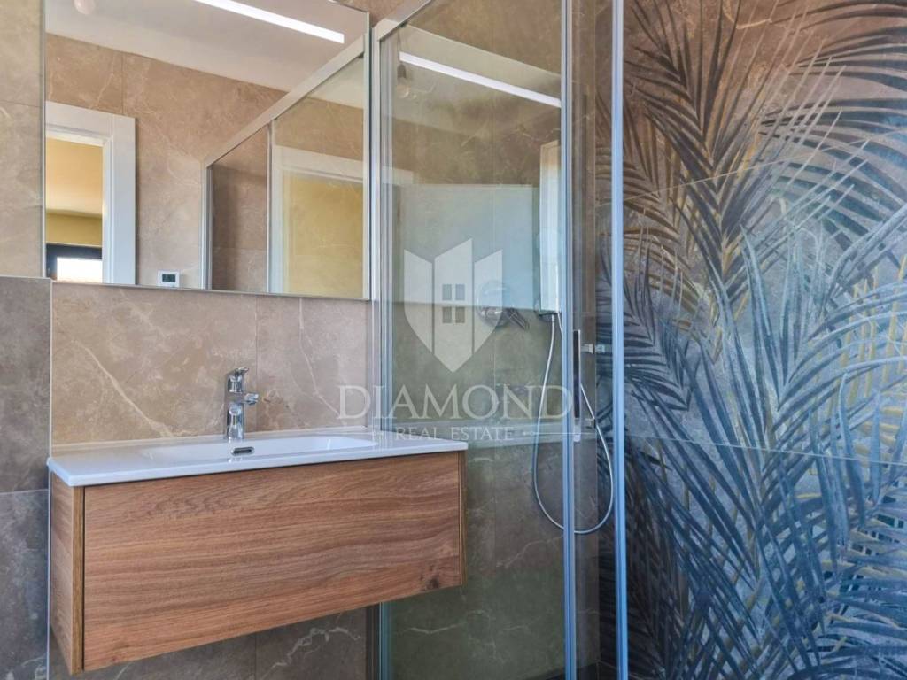A residential building with a total of five apartments is located in a settlement within the city of Poreč, only 500 m from the sea and the city center. We offer this beautiful penthouse with a spacious terrace and garage. This spacious penthouse can be physically separated into two apartments. One for family life, and the other for tourist rental. The total area of the apartment is 188.48 m2 and consists of a spacious living room, dining room, open space kitchen, five bedrooms, five bathrooms, terrace and storage room and garage. In addition to the garage, parking is located in front of the building. The living room leads directly to a spacious terrace of a total of 45.52 m2. The apartment will be heated with gas and a fireplace in the living room. There will be gas underfloor heating in the entire apartment and air conditioners in every room. Each room will also have room thermostats to regulate the temperature in the room. Each apartment has a telephone connection. We come to the apartment directly from the garage by elevator or by an elegant stone staircase. The entrance door to the building and to the apartment will be an anti-burglary door. All amenities necessary for life, such as shops, restaurants, post office, bank, school, kindergarten, nursery, pharmacy, doctor, a walk along the sea, are located in the immediate vicinity of the apartment itself. Due to its content and construction quality, this property is an ideal investment for family life and for tourist rental.