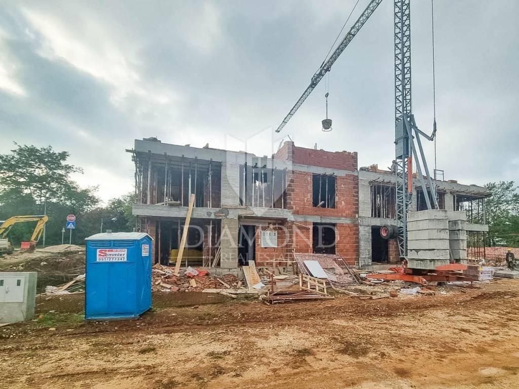 We present to you an apartment on the ground floor of a new building. The apartment is located in a small Istrian fishing village on the west coast of Istria, between the tourist towns of Poreč and Vrsar. All necessary facilities for life are within a few minutes' walk. And the first beautiful beaches are only 600m away. The apartment is located on the ground floor of a building with 6 residential units and its square footage is 91,70 m2. The apartment consists of an entrance hall with a hall, a spacious living room with a kitchen and dining room, a bathroom, and two bedrooms, one of which has its own bathroom. The living room has access to a terrace that leads to the garden. Quality and modern construction with carefully selected materials and equipment. The apartment will be heated by air conditioners, and since the building has a chimney, a pellet or wood stove can be installed. The floors are covered with tiles and laminate. Turnkey sales.