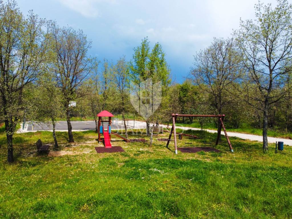 In a quiet place, only 5 km from the city of Poreč and only 2 km from the first beaches, there will be two buildings with a total of ten apartments. This fantastic family apartment is located on the first floor and will consist of a living room, dining room and open space kitchen, three bedrooms, bathroom and toilet. From the living room and from one bedroom there is direct access to the terrace. Its total area is 143.35 m2. The apartment is heated via air conditioning and electric underfloor heating. Each apartment will have two parking spaces. The apartments will be located on the edge of the construction zone, thus providing future owners with additional privacy and a peaceful atmosphere. All the necessities of life, such as schools, kindergartens, shops, children's parks, playgrounds, tourist camps, restaurants, post offices, banks, and pharmacies, are located near the town. The planned completion of construction will be the summer of 2025.
