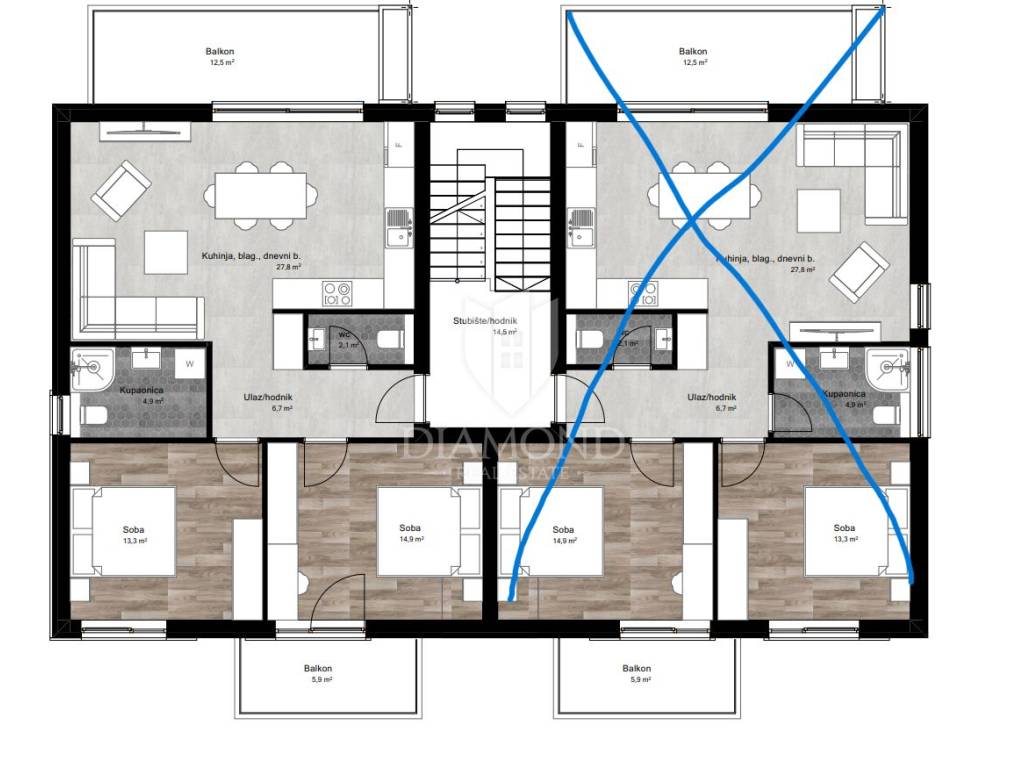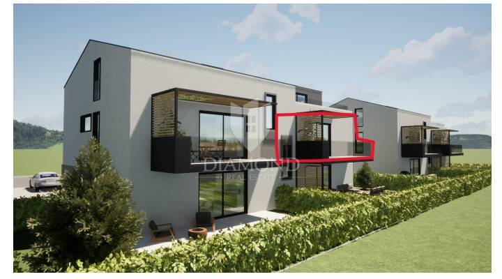 In a quiet place, only 5 km from the city of Poreč and only 2 km from the first beaches, there will be two buildings with a total of ten apartments. This fantastic family two-room apartment is located on the first floor and will consist of a living room, dining room and kitchen according to the open space concept, two bedrooms, bathroom and toilet. From the living room and from one bedroom there is direct access to the terrace. Its total area is 72.10 m2. The apartment is heated via air conditioning and electric underfloor heating. Each apartment will have two parking spaces. The apartments will be located on the edge of the construction zone, thus providing future owners with additional privacy and a peaceful atmosphere. All the necessities of life, such as schools, kindergartens, shops, children's parks, playgrounds, tourist camps, restaurants, post offices, banks, and pharmacies, are located near the town. The planned completion of construction will be the summer of 2025.