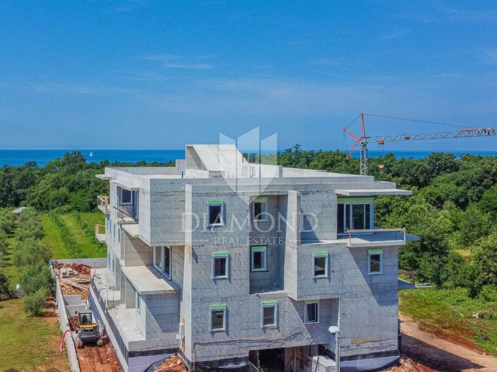 The apartment is built from high-quality materials with floor heating on a heat pump and cooling on air conditioners, all with the possibility of remote control. The carpentry will be PVC with three-layer glass, mosquito nets and electric blinds. The floors will be made of ceramics, and granite stone will be placed on the building's corridors and terraces.