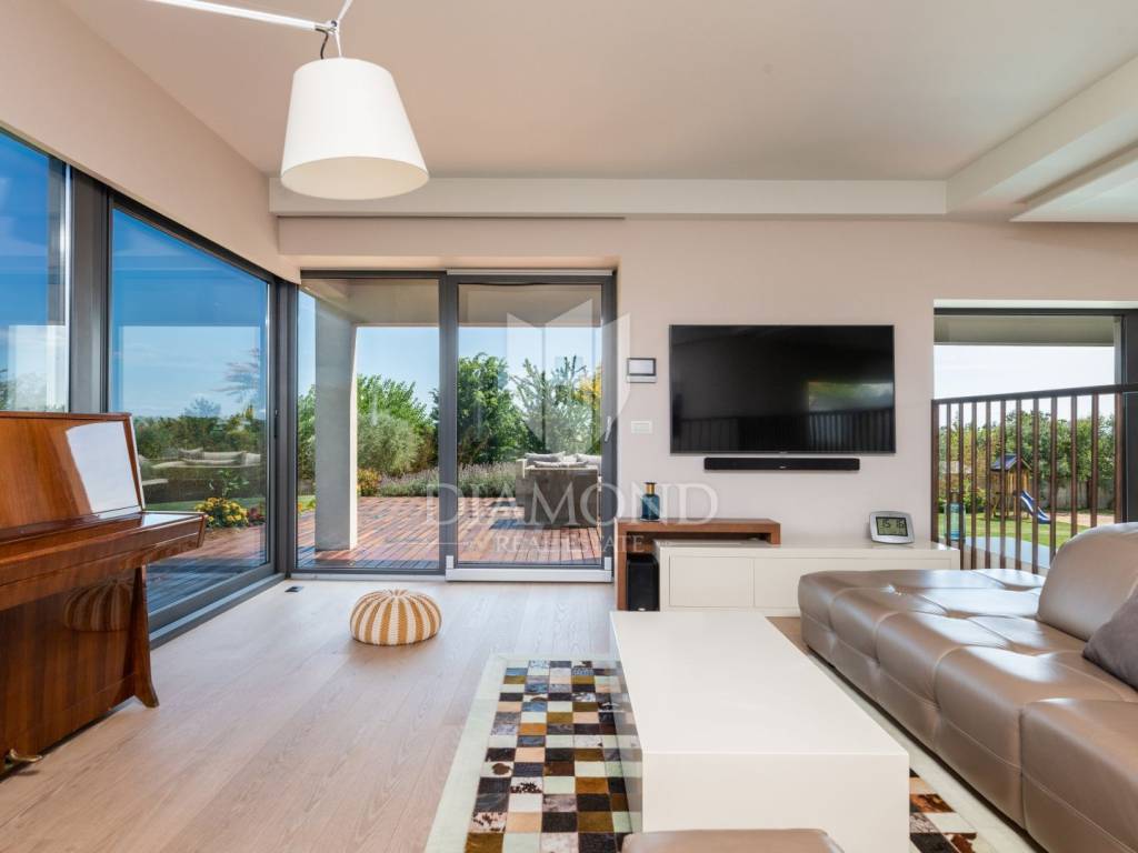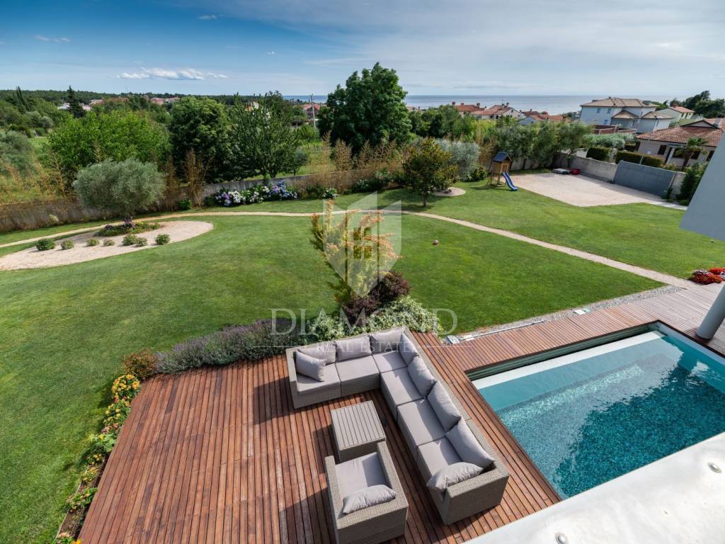 For sale is a modernly designed and well-equipped villa with a large garden and a beautiful sea view not far from Umag.