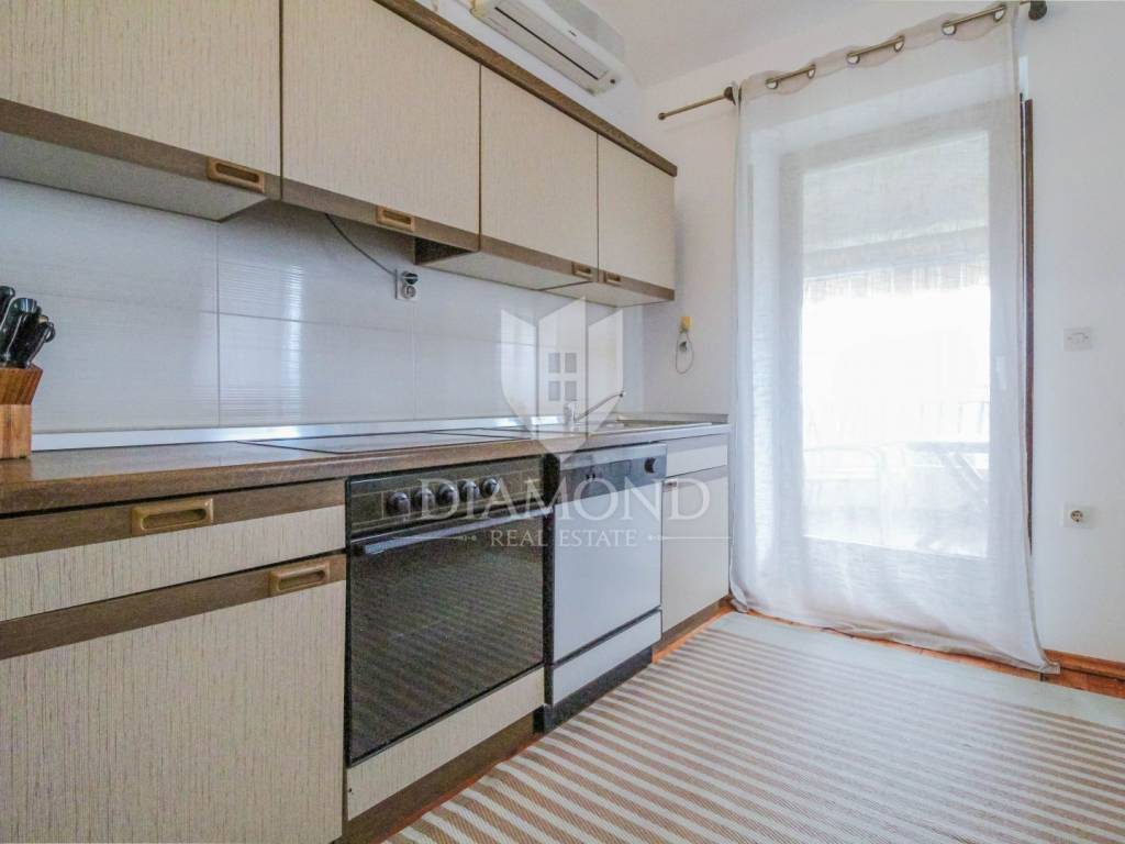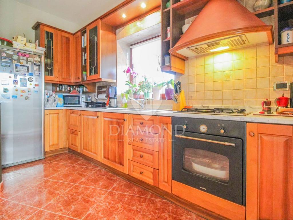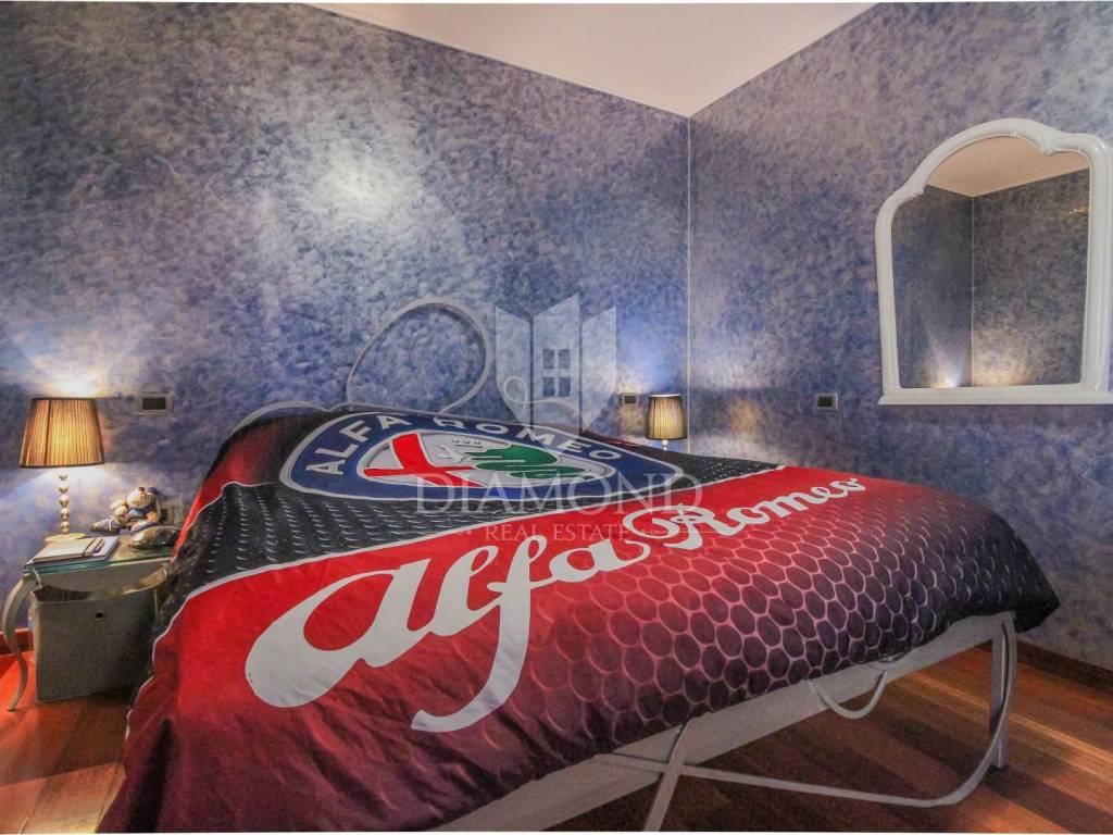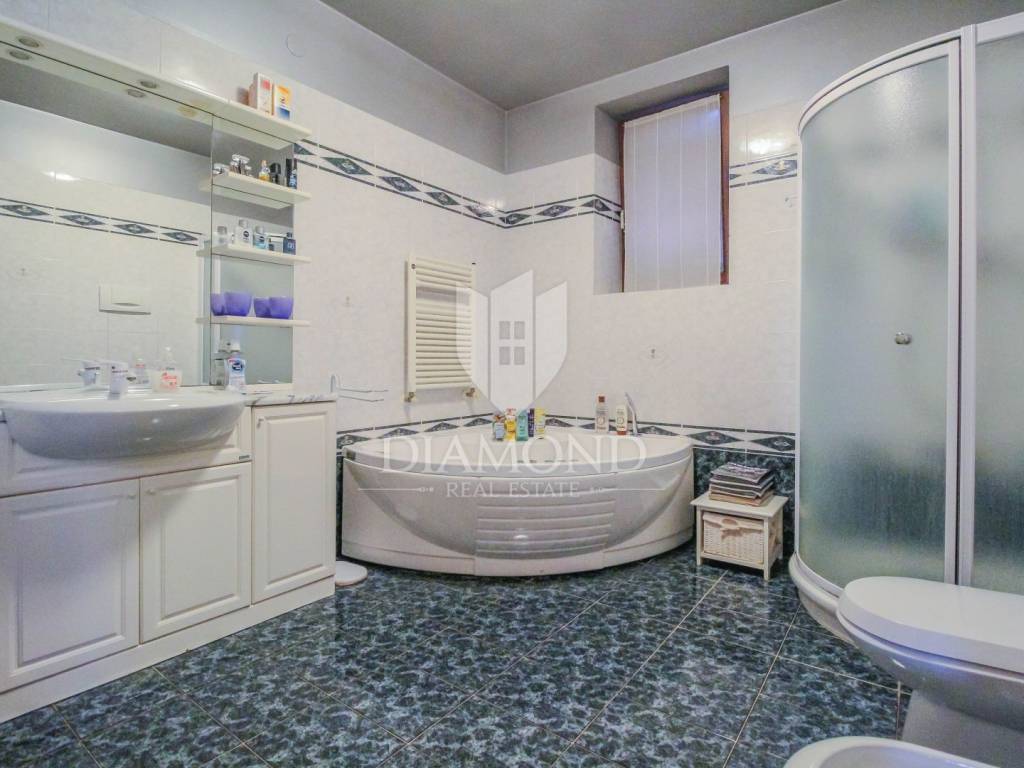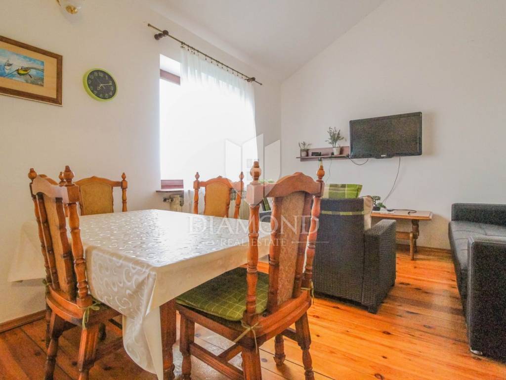 The house has an area of 500 m2 and extends to the ground floor, mezzanine, first floor and attic. On the ground floor there is a spacious apartment that was renovated several years ago and consists of a living room, kitchen with access to a covered terrace and garden, dining room, 4 bedrooms, 2 bathrooms, small laundry room and hallway. Upstairs there is one apartment consisting of a living room with fireplace, kitchen with dining area, bedroom, 2 bathrooms, pantry and 2 balconies. In addition to this apartment there is another apartment consisting of a living room with kitchen and dining area, 2 bedrooms, bathroom, hallway and balcony. Stairs lead to the attic where there are 2 larger rooms that can be used for multiple purposes and a balcony with a beautiful and open sea view. The house also has a garage, storage room and boiler room. The house is heated by oil central heating, pellet stove, wood burning fireplace, air conditioning, and there is a solar heating system to heat water. The facade of the house was renovated in 2018. Next to the house there is another smaller house decorated in a rustic style that is currently used as a studio apartment with private bathroom, and can also be used as a tavern. In front of the house is a covered terrace.