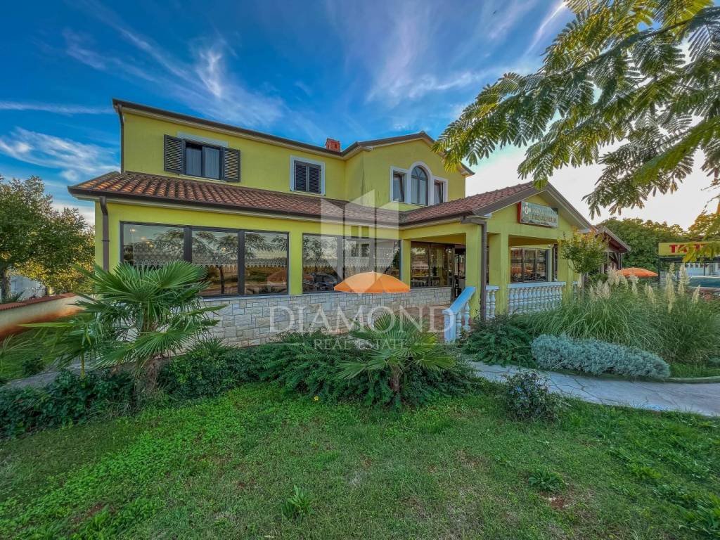 For sale is a business building together with a spacious apartment on the first floor, located in the vicinity of Umag, ideal for investment.