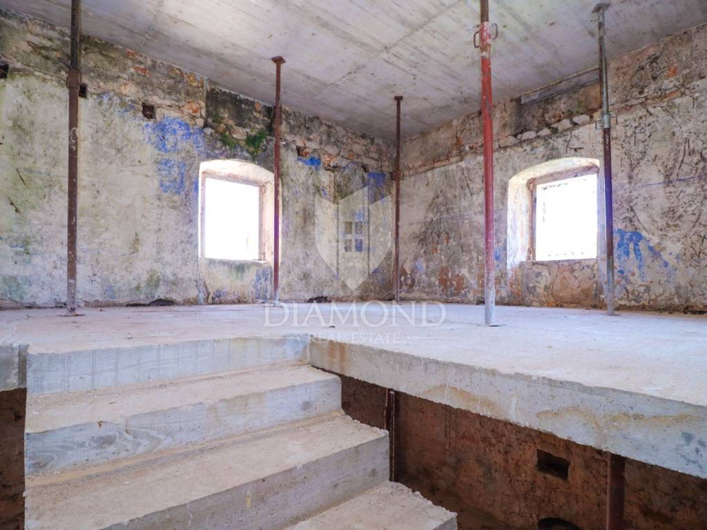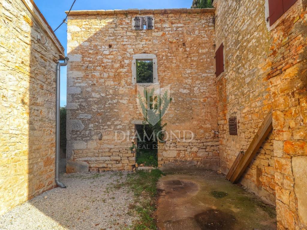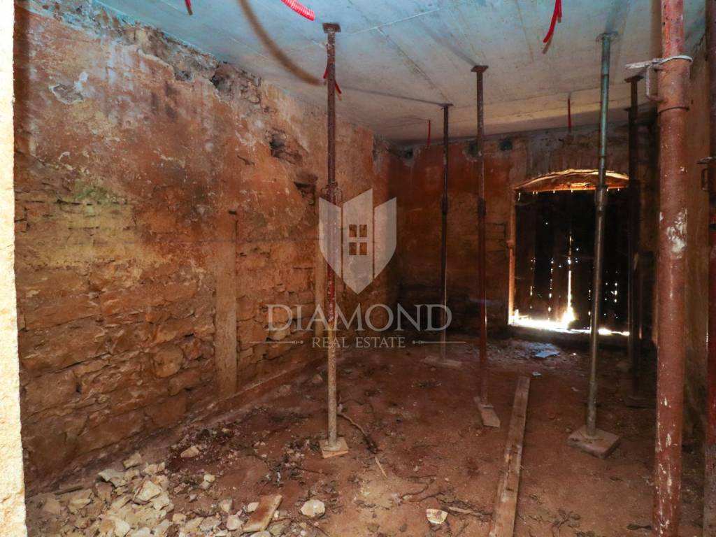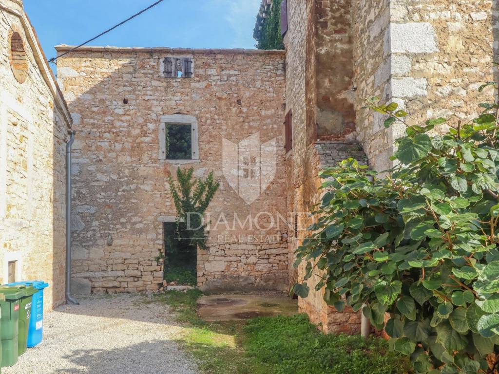 Poreč, surroundings, Istrian stone house with sea view! In the suburbs of the city of Poreč, just 10 km from the first beaches, an Istrian stone house is for sale, which is in the phase of complete renovation. Its total size is 170 m2 and consists of two floors with an attic. On the ground floor, there will be a spacious kitchen with a dining room, and further on, in a separate part, there will be a spacious living room, toilet, storage room. The internal staircase leads to the first floor, where there will be two spacious bedrooms, each with its own bathroom, on the second floor there is another bedroom with a bathroom and access to the roof terrace with a beautiful view of the sea. In the attic there is a smaller studio with a living room. The house is heated via air conditioning in every room and electric underfloor heating throughout the house. An electric fireplace is provided in the living room, which gives an additional atmosphere to the home. All amenities necessary for life are located not far from the place. The property is subject to VAT and the total amount is VAT included. Due to its authentic flair and location, this property is an ideal investment for both family life and tourist rental.