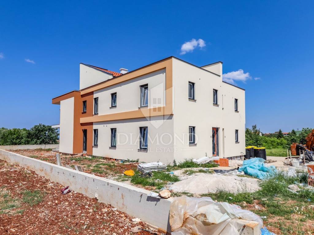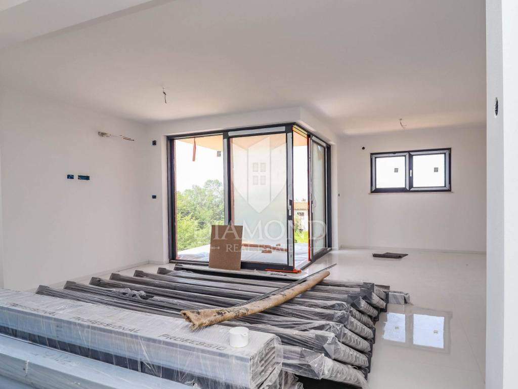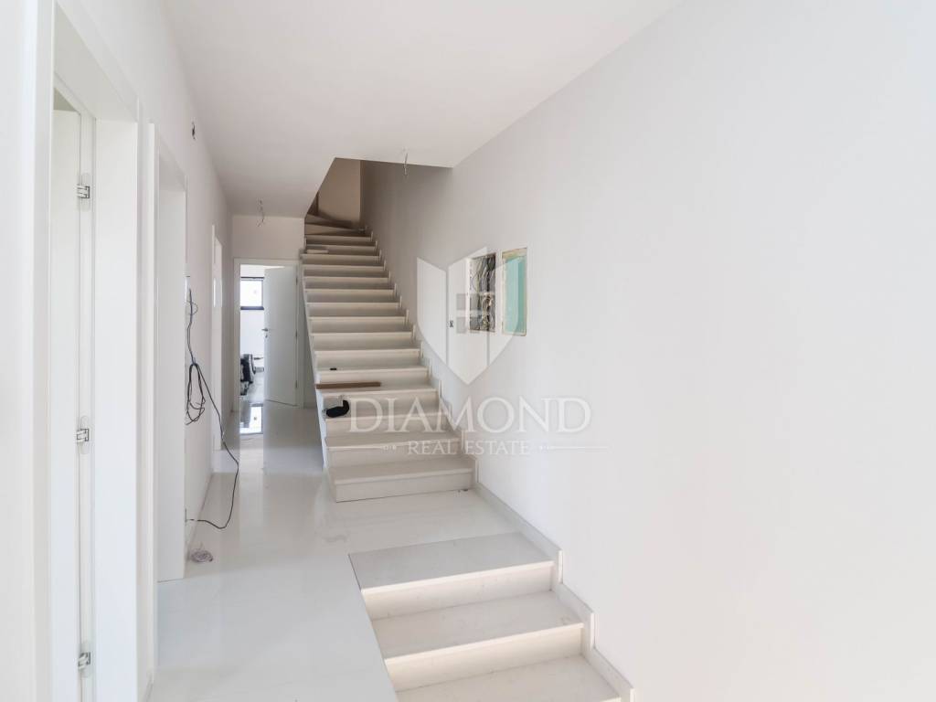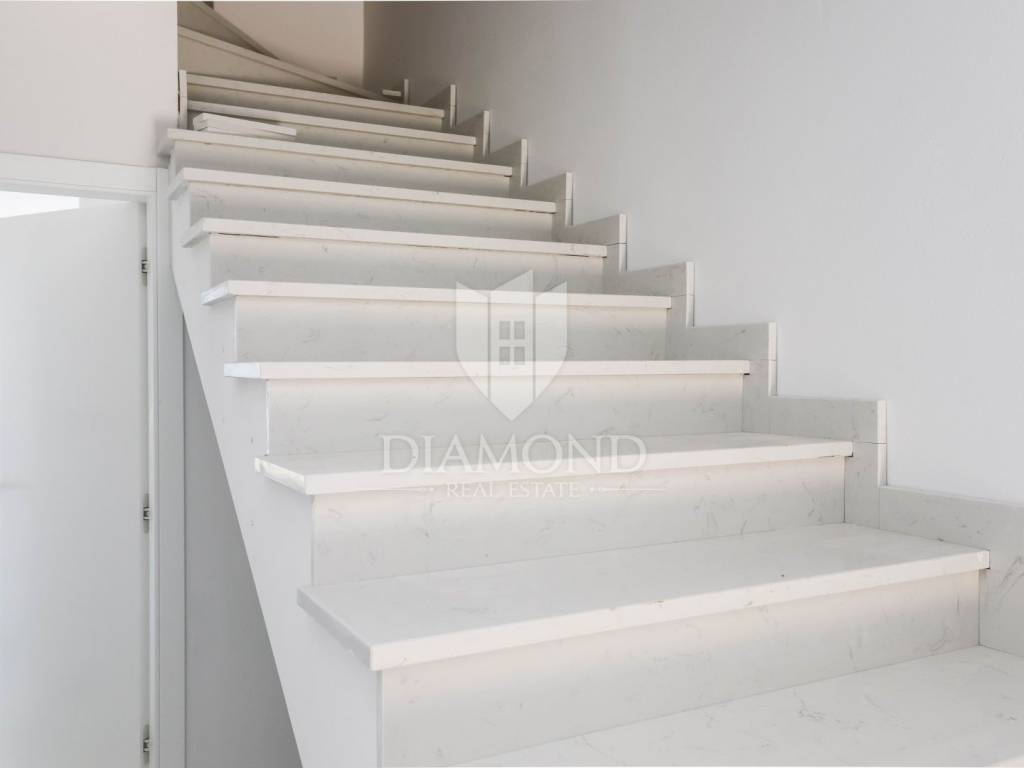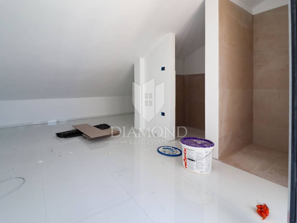 Two-story apartment for sale on the first floor of a building with 4 apartments. The first floor of the apartment consists of a spacious living room with kitchen and dining room, three bedrooms, one of which has its own bathroom, bathroom, toilet and storage. The living room opens onto a covered terrace with a view of nature and the sea. An elegant staircase leads to the second floor of the apartment, where there is a wellness area that leads to a terrace with a panoramic view of the sea! The apartment has two parking spaces located in front of the building. Heating and cooling of the apartment is made possible by electric underfloor heating and air conditioners. The apartment is habitable. The property is in the VAT system.