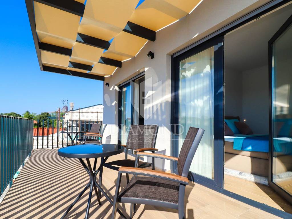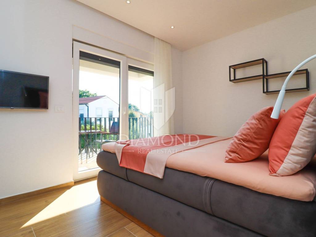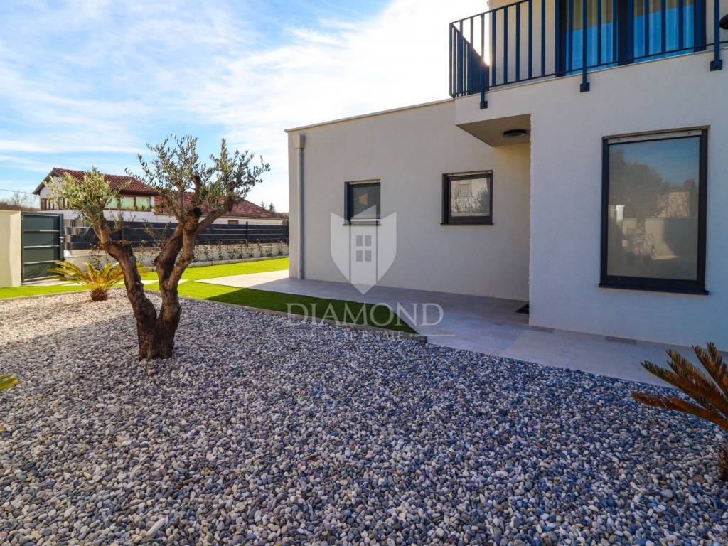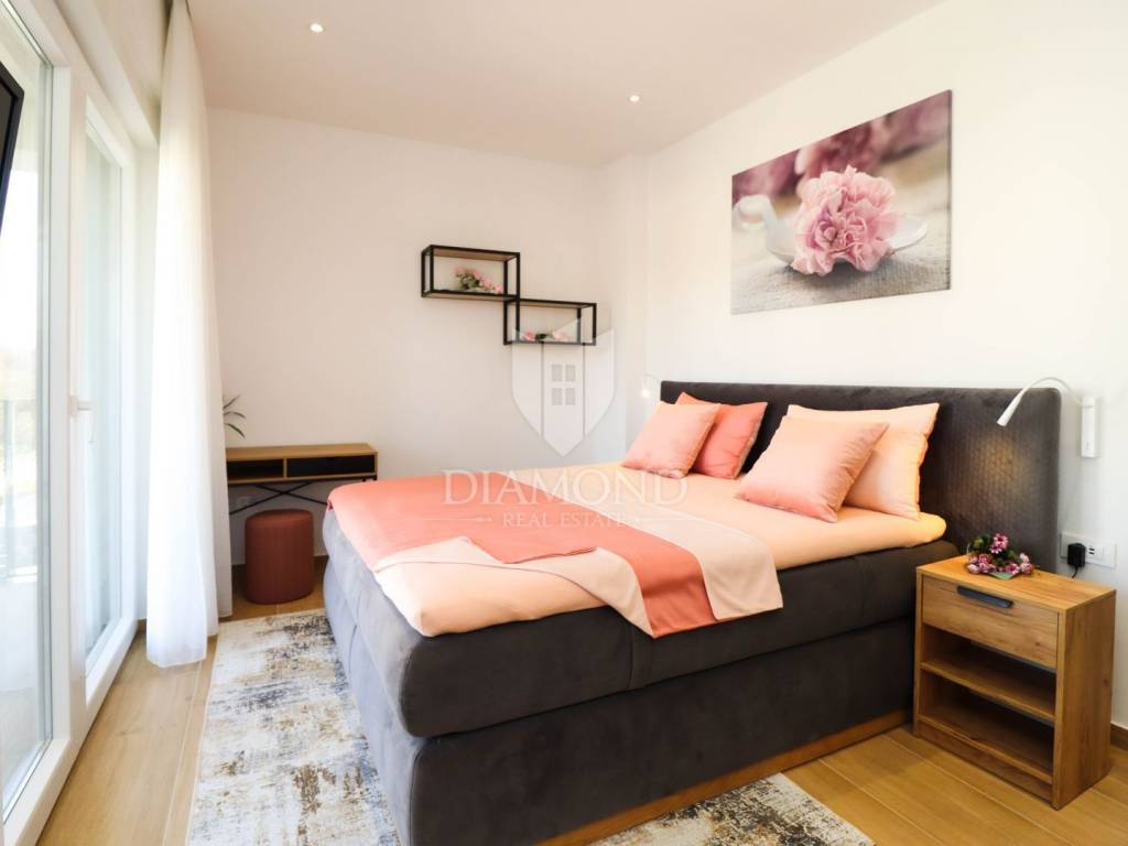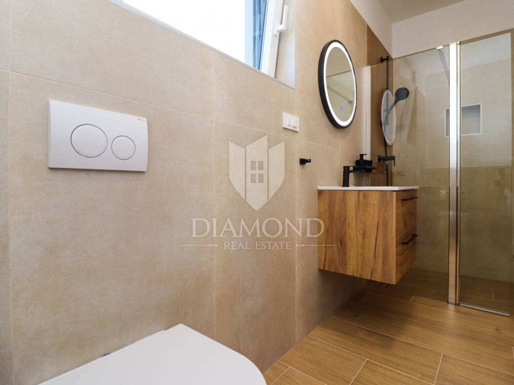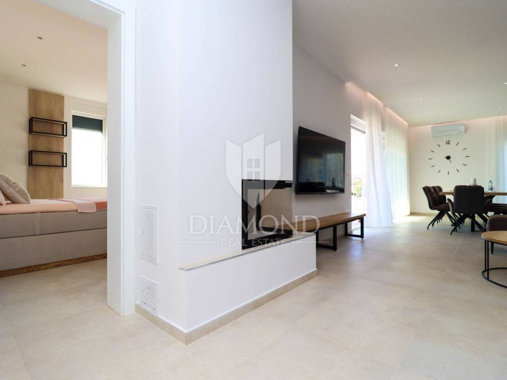 This imposing villa is located in a place known for the best-preserved medieval fortified towns in Istria. Its total area is 198.82 m2 and is spread over two floors. Upon entering the villa, we come to a spacious living room, dining room and kitchen, which have direct access to the terrace and sun deck with pool. On the ground floor there is one comfortable bedroom with a bathroom that is completely adapted for people with disabilities, another separate bathroom and a storage room. Large glass walls have been installed throughout the living room and dining room, which allow a large influx of sunlight, which gives the space itself a large source of light. The stone staircase leads to the first floor, where there are three bedrooms, each with its own bathroom and access to a spacious terrace. There will be a dining table and a summer kitchen with a wood-burning and gas fireplace on the terrace by the pool and sunbathing area, which will be partly closed and covered with solid panels. In addition to the summer kitchen, there will also be a children's park. The garden in front of the villa will be planted and decorated with Mediterranean plants. The heating of the villa is made possible by means of a heat pump as underfloor heating, air conditioners located in every room which are also used for cooling on hot summer days, through solar panels which will be used for complete heating of the villa and supply of hot water in the bathrooms. The bathrooms are connected to the depurator located in the boiler room, as well as other connections. The parking lot behind the villa will be covered for two parking spaces and uncovered parking for another two parking spaces. There will be one building in the yard as an outdoor storage room. The yard is completely fenced and has two entrances, one entrance is with an electric gate. The villa is located on the edge of the construction zone in a quiet place, only 15 km from the city of Poreč and its beautiful beaches. The villa is fully furnished with high-quality furniture. All facilities for life such as school, kindergarten, shop, catering facilities and post office are located just a few minutes away by car. The planned completion of construction is the winter of 2023. This fully furnished villa with full contents is an ideal investment for tourist rental.