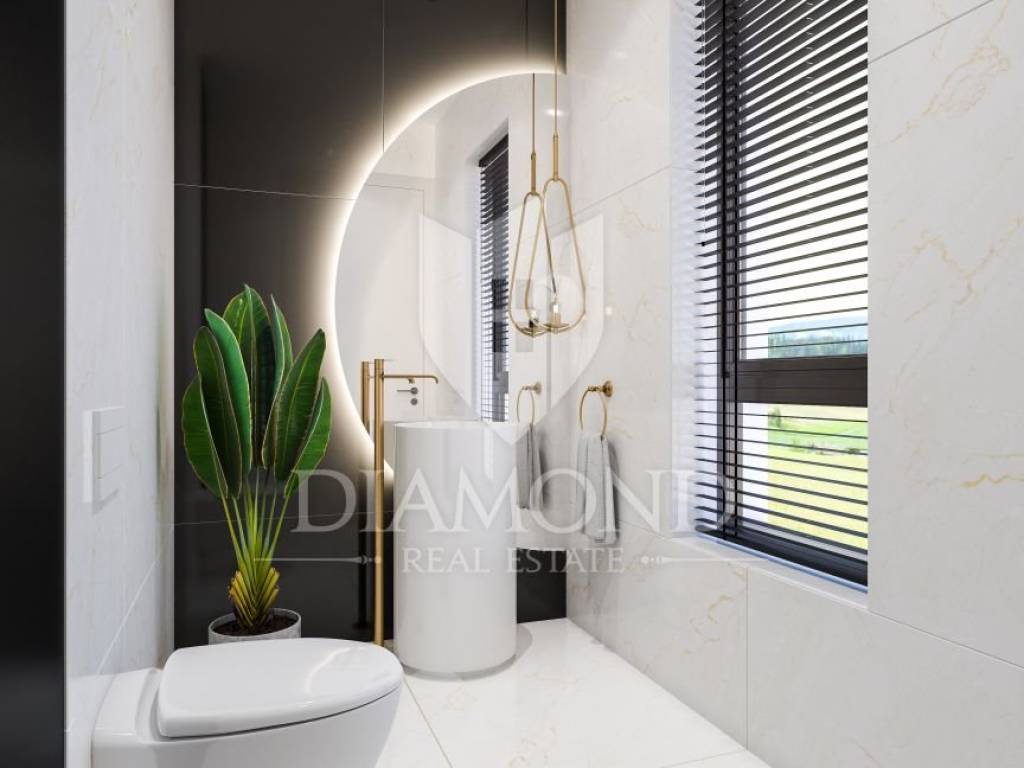 This luxurious villa is located in the idyllic western part of Istria, providing an ideal escape from the busy everyday life. Its proximity to wineries, renowned restaurants and olive oil producers ensures that the future owners, in addition to the beauty of the villa itself and nature, will also enjoy superb gastronomic and oenological experiences. With a total area of ground floor + first floor of 306 m2 and covered terraces of the ground floor of 70 m2 and uncovered terraces of 82 m2, with a swimming pool of 50 m2 and a fire pit of 10 m2, this villa offers plenty of space for luxurious living. Also, the land is completely fenced and landscaped, with automatic garden irrigation and a charger for electric vehicles, and four parking spaces that complete the complete package of luxury and comfort of this luxurious villa.