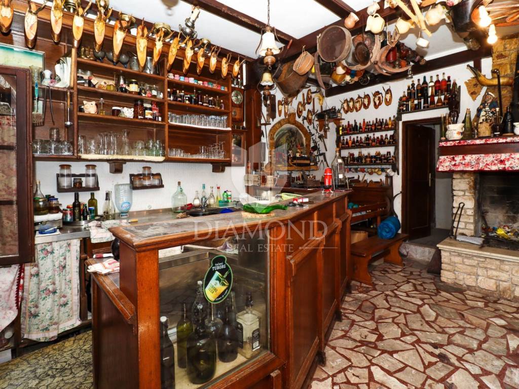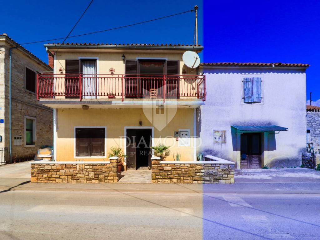 A house with three apartments is for sale in a place known for its raspberry oil and excellent wine. The house was built in 1990 and was subsequently upgraded apartment by apartment. On the ground floor there is a commercial space that once served as a restaurant. On the ground floor, on the side, there is a one-room apartment of a total of 48 m2, which consists of a hallway, a bedroom, a bathroom, a living room and a kitchen, on the ground floor there are two apartments that each have their own entrance, one apartment has a total of 55 m2 with one bedroom with a room, bathroom, spacious living room, dining room and kitchen, and the third apartment has a total of 65 m2 with a total of one bedroom, dining room, living room with wood-burning fireplace, kitchen and pantry. The house is heated centrally, or with electricity. On the ground floor there is also a storage room for tools. The garden is planted with olive trees and trees where on summer days you can enjoy the shade under the trees and observe the nature around you. The house is located only 200 m from the first beaches and the newly renovated marina, and 2 km from the first tourist camps and beaches. The town of Poreč is only 8 km away. All amenities from school, market, restaurants, walks by the sea and in nature are located in the place where the house is located. This property, with minor adaptation, is an ideal investment for tourist rental.