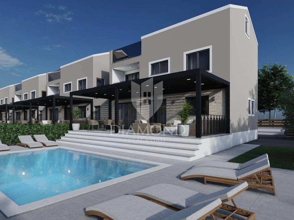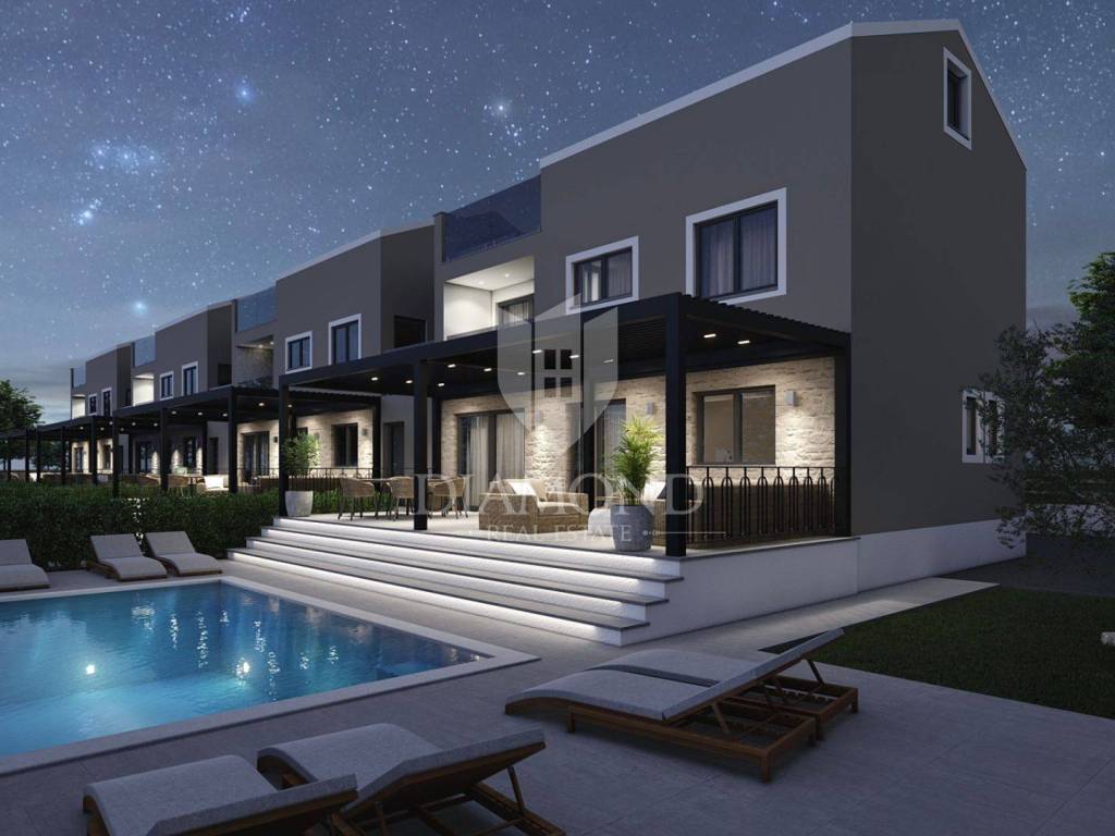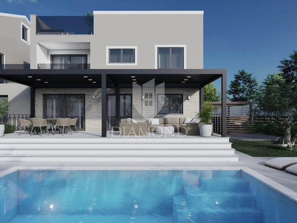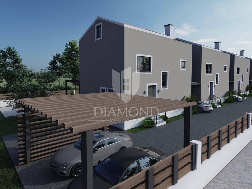 In a quiet Istrian town only 12 km away, four houses without swimming pools with sea views are under construction. The house is located on the edge and its total area is 152 m22, and extends over two floors. On the ground floor there is a spacious living room, kitchen and dining room, toilet, and storage, on the first floor there are three bedrooms with their own bathrooms, an entrance hall, and a loggia, and on the second floor there is another spacious master room with its own bathroom and a spacious terrace and fitness. From the floor you can see a panoramic view of the sea and nature. The heating of the house is planned through a heat pump and air conditioning. It is sold unfurnished. With an additional charge, it is also possible to make a pool of 8X4 m2. All facilities are located a few minutes away by car. The completion of construction would be December 2024.