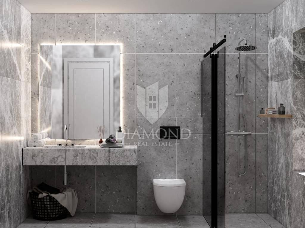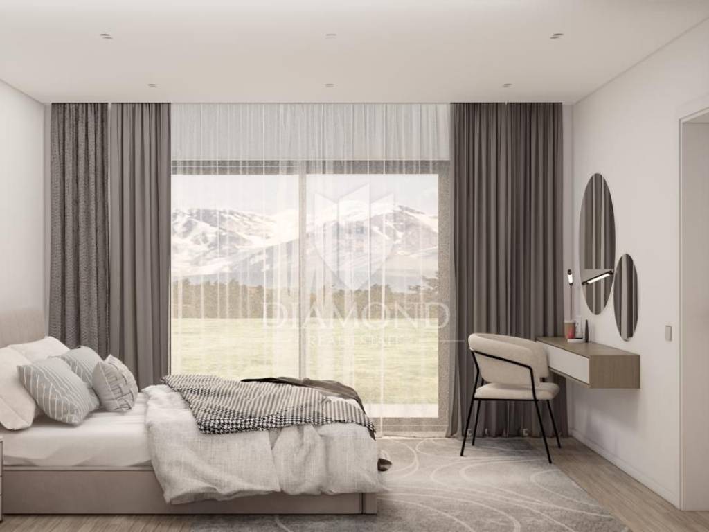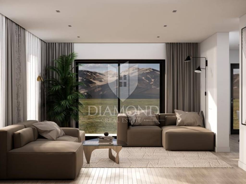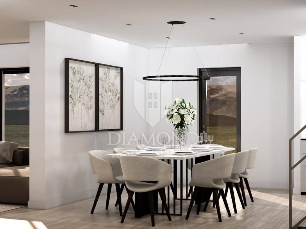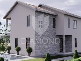 We present to you this beautiful house located in an idyllic and peaceful location, offering the ideal combination of comfort, privacy and relaxation. The total area of the villa is 136.12 m2 and is spread over two floors. The ground floor is dominated by an open concept that connects the living room, dining room and kitchen, creating a spacious and bright space. The large glass walls in the living room not only offer a beautiful view of the environment, but also allow plenty of sunlight. An ideal space for gathering family and friends. There is also a toilet and a storage room on the ground floor. Upstairs there are three spacious bedrooms, each with its own bathroom and dressing room. Each room represents an oasis of privacy and comfort, providing the perfect space for rest and relaxation. This villa with its open space and airy interior creates the perfect home for those who value contemporary design, comfort and a quality lifestyle. The villa will be heated by a heat pump as underfloor heating and air conditioning. Right next to the pool is a spacious sunbathing area with comfortable deckchairs, ideal for sunbathing and relaxing. This is a place where you can enjoy the warm rays of the sun, reading a book or simply enjoying the peace of the surroundings. The first beaches are only 9 km away. Content for life is nearby. Located in a peaceful environment, this property is an ideal place for family life.