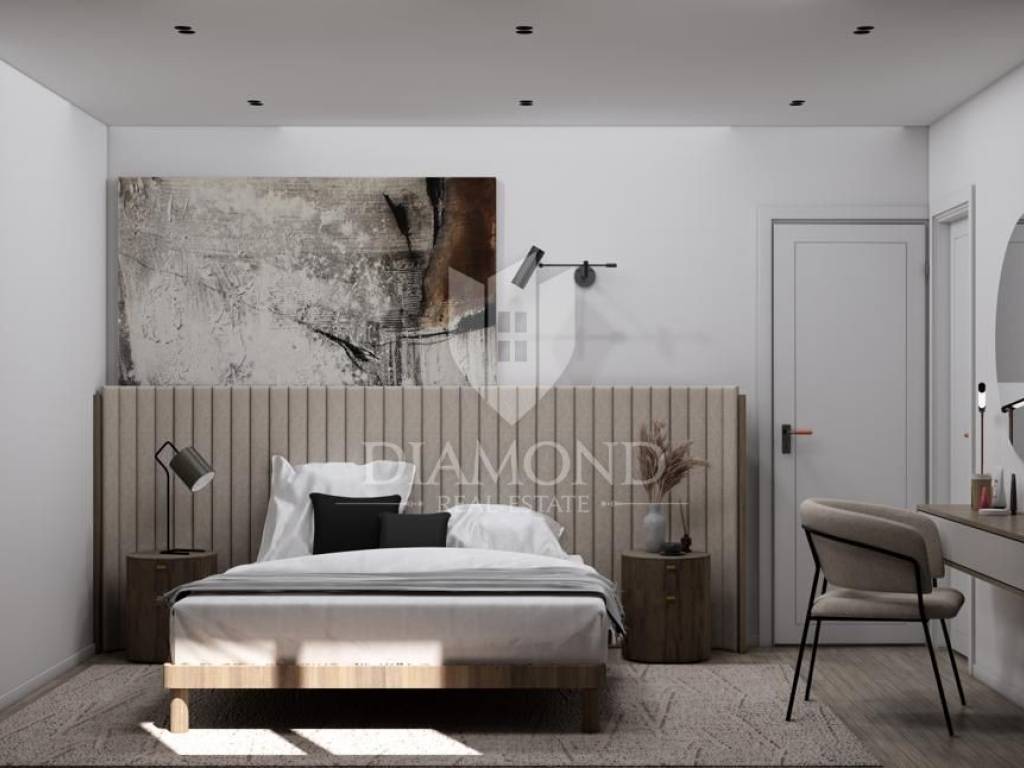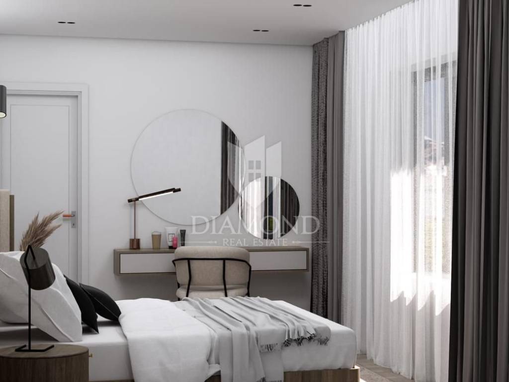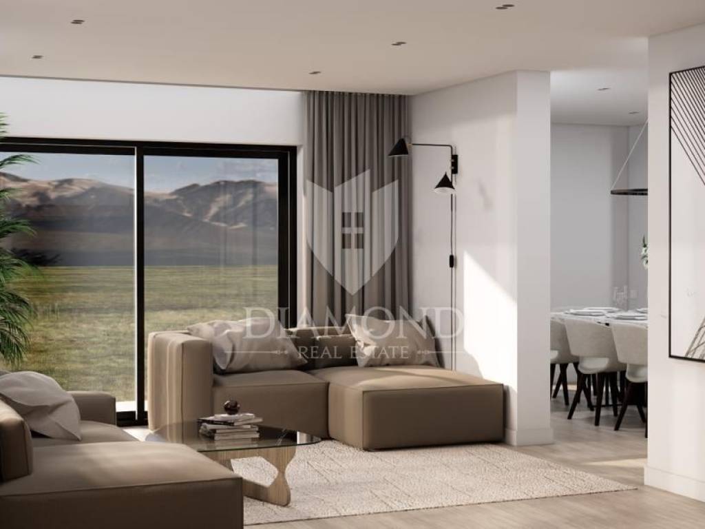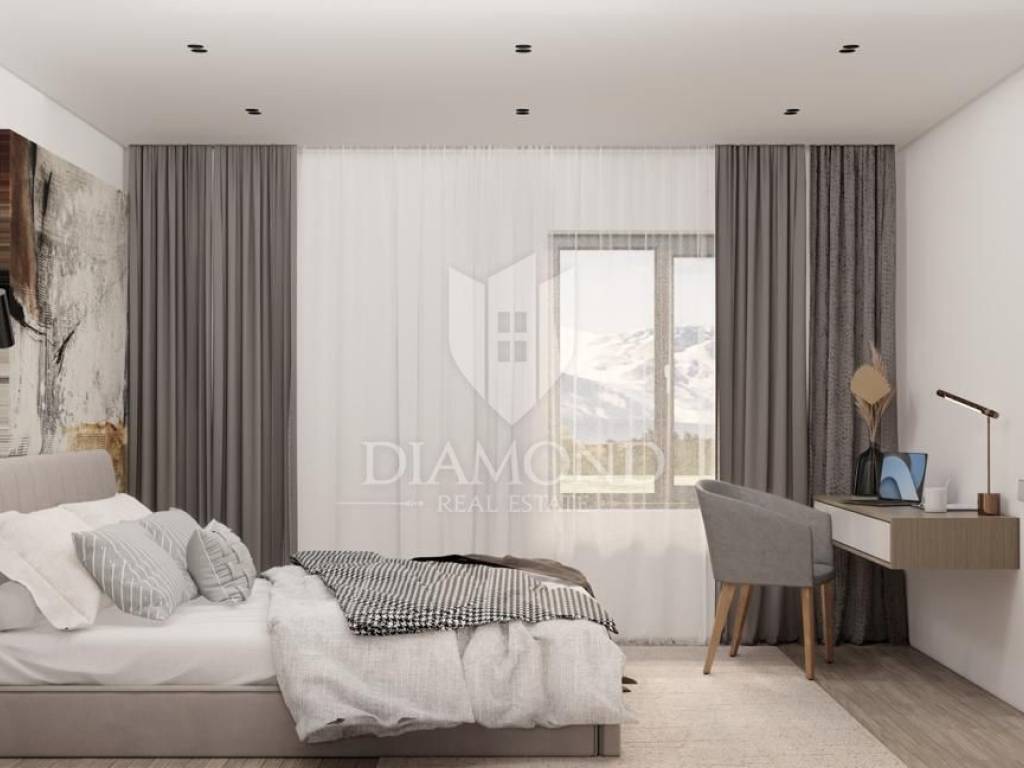 We present to you this beautiful house located in an idyllic and peaceful location, offering the ideal combination of comfort, privacy and relaxation. The total area of the villa is 136.12 m2 and is spread over two floors. The ground floor is dominated by an open concept that connects the living room, dining room and kitchen, creating a spacious and bright space. The large glass walls in the living room not only offer a beautiful view of the environment, but also allow plenty of sunlight. An ideal space for gathering family and friends. There is also a toilet and a storage room on the ground floor. Upstairs there are three spacious bedrooms, each with its own bathroom and dressing room. Each room represents an oasis of privacy and comfort, providing the perfect space for rest and relaxation. This villa with its open space and airy interior creates the perfect home for those who value contemporary design, comfort and a quality lifestyle. The villa will be heated by a heat pump as underfloor heating and air conditioning. Right next to the pool is a spacious sunbathing area with comfortable deckchairs, ideal for sunbathing and relaxing. This is a place where you can enjoy the warm rays of the sun, reading a book or simply enjoying the peace of the surroundings. The first beaches are only 9 km away. Content for life is nearby. Located in a peaceful environment, this property is an ideal place for family life.