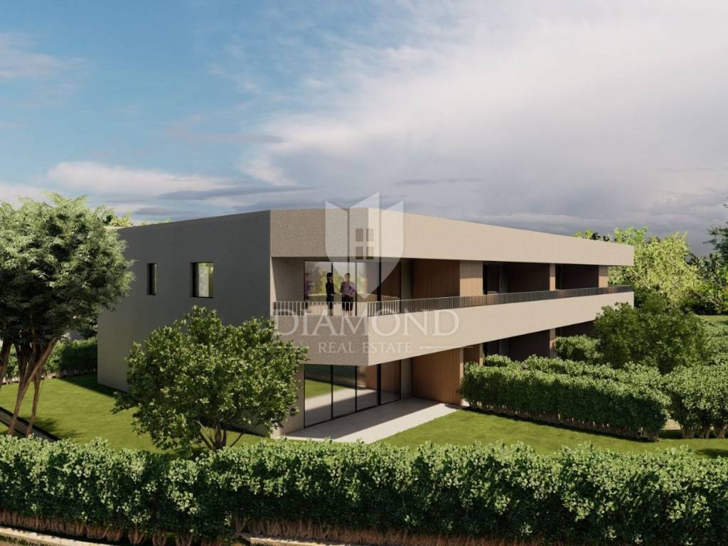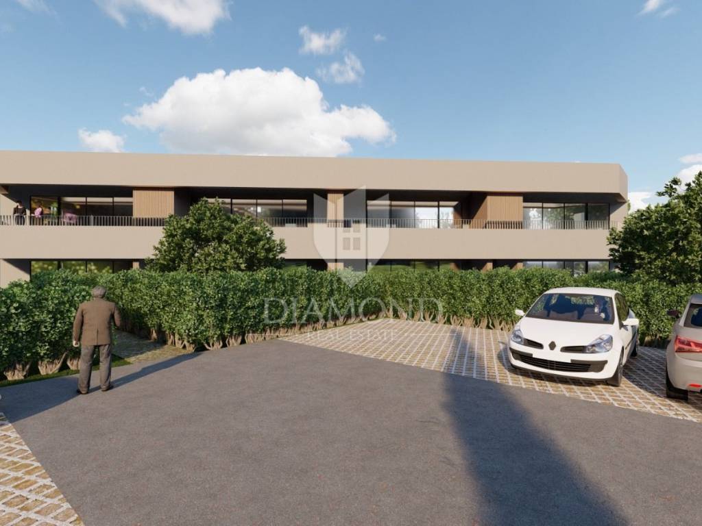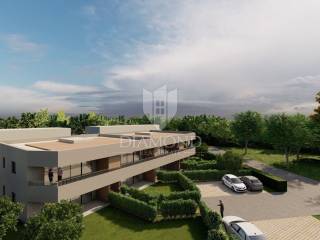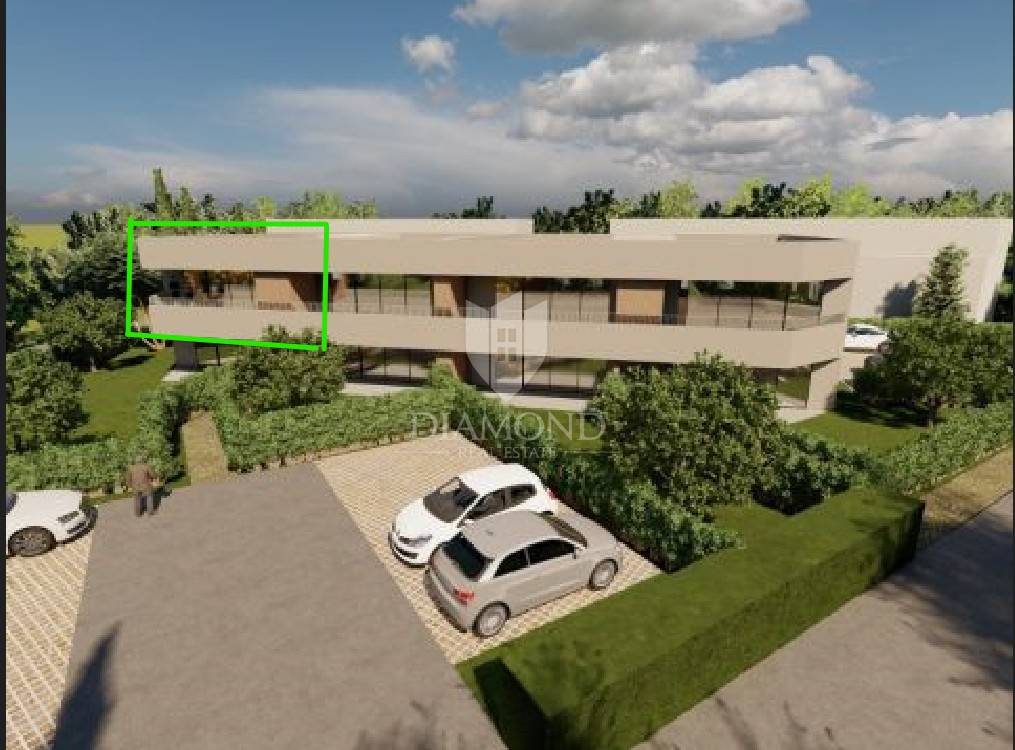 This two-room apartment on the first floor with a terrace is for sale in the vicinity of Poreč in a small, quiet place 2 km from the sea and 6 km from the city of Poreč. All necessary facilities for life, such as school, kindergarten, pharmacy, post office, restaurants, shops, clinic, are only a few minutes' drive from the property itself. The apartment is located on the first floor of a modern new building and its area is 81.29 m2. The apartment consists of an entrance hall, a kitchen, an open-plan dining room and living room, three bedrooms, a storage room and a bathroom. From the living room there is a covered terrace of 16.50 m2. Air conditioners will be installed in all rooms of the apartment. Ceramic tiles and laminate will be installed. Dark glass walls will be placed on the terraces, and the carpentry in the apartment will be PVC with electric blinds and glass filled with argon. The entrance door will be anti-burglary. In front of the apartment there are two parking spaces owned by the future buyer. The apartment is sold on a turnkey system without furniture. Completion of the works and occupancy is expected for the 2/2025. The property is included in the VAT system and the price with VAT is displayed. Due to its location and contents, this property is an ideal investment for family life as well as for vacation or tourist rental.