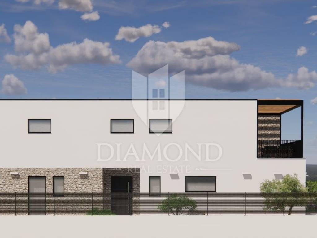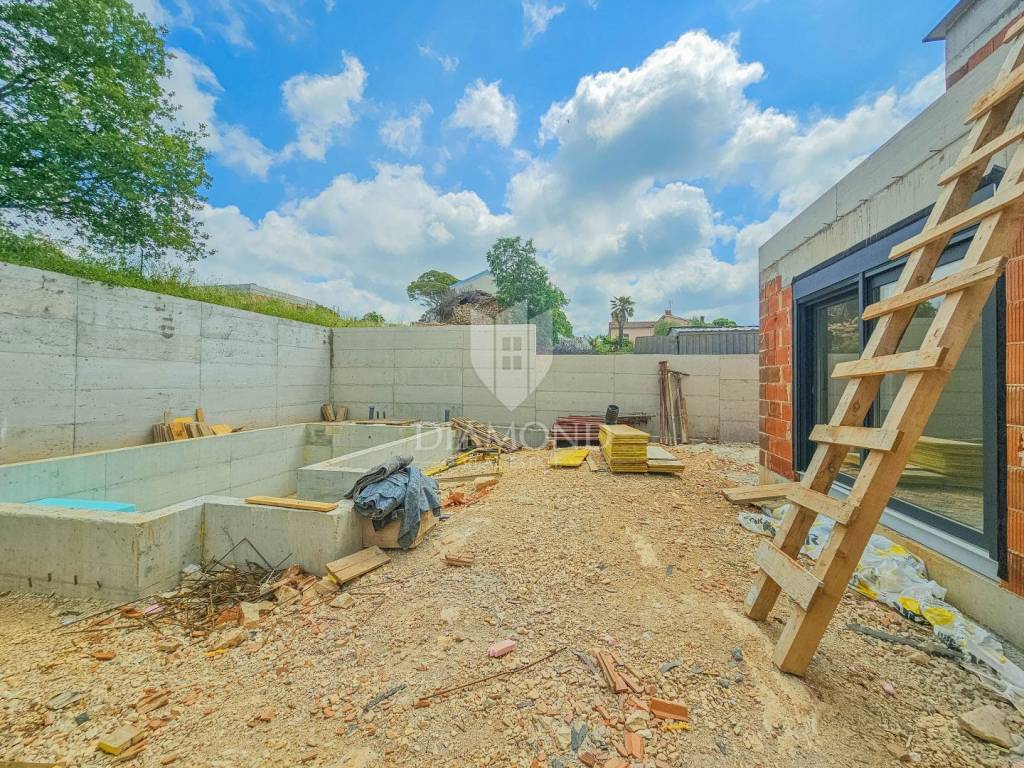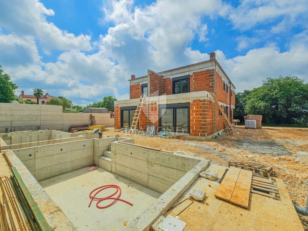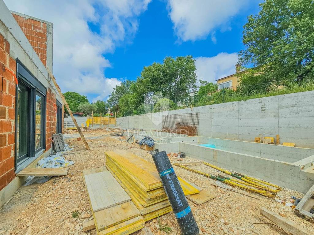 The house has a modern design with stone details, and is being built from quality materials with an A+ energy certificate. Construction has begun and its full completion is expected by autumn 2025.