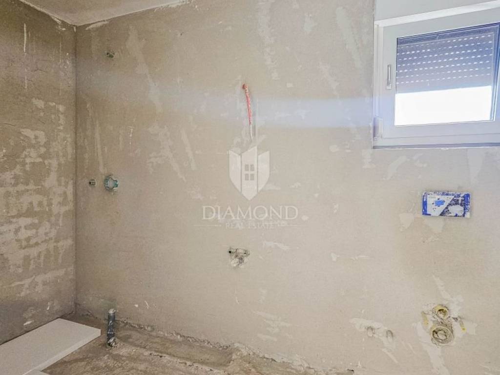 The house is spread over 2 floors and the total area of the house is 132 m2. On the ground floor there is a spacious living room with an open-plan kitchen and dining room, 1 bedroom with a bathroom, a laundry room, a storage room and a guest toilet. From the living room you can reach the landscaped garden where there is a swimming pool with a sunbathing area. The first floor is reached by internal stairs where there are 2 more bedrooms, each with its own bathroom and terrace. The house will have underfloor heating throughout the house and air conditioning in each room. In front of the house there are 2 parking spaces, one of which will also have an electric vehicle charger.
