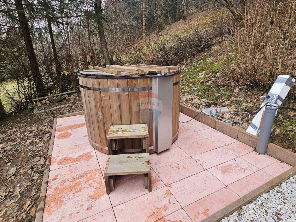 Tucked away in privacy, far from prying eyes, lies a secret sanctuary—a jacuzzi surrounded by greenery, along with a small tool shed and yet another space for relaxation. A perfect blend of nature and comfort, a place designed to escape the everyday.