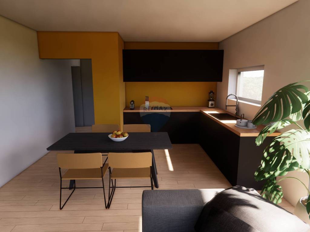 We are offering apartment “D”, located on the 1st floor, with a total usable area of 110 m² and the following layout: entrance hall, guest toilet, laundry room, two large bedrooms – including a master bedroom with its own bathroom – another bathroom, and a spacious open-plan living room with kitchen. The living room leads to a covered terrace. Heating will be provided via an autonomous underfloor system powered by heat pumps.
