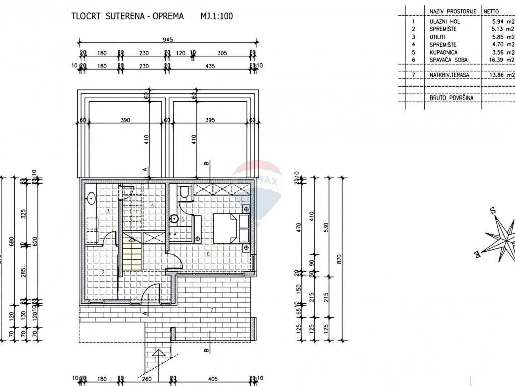 Basement (48.50 m²) – Includes an entrance area, storage room, utility room, bathroom, bedroom, and a covered terrace.
