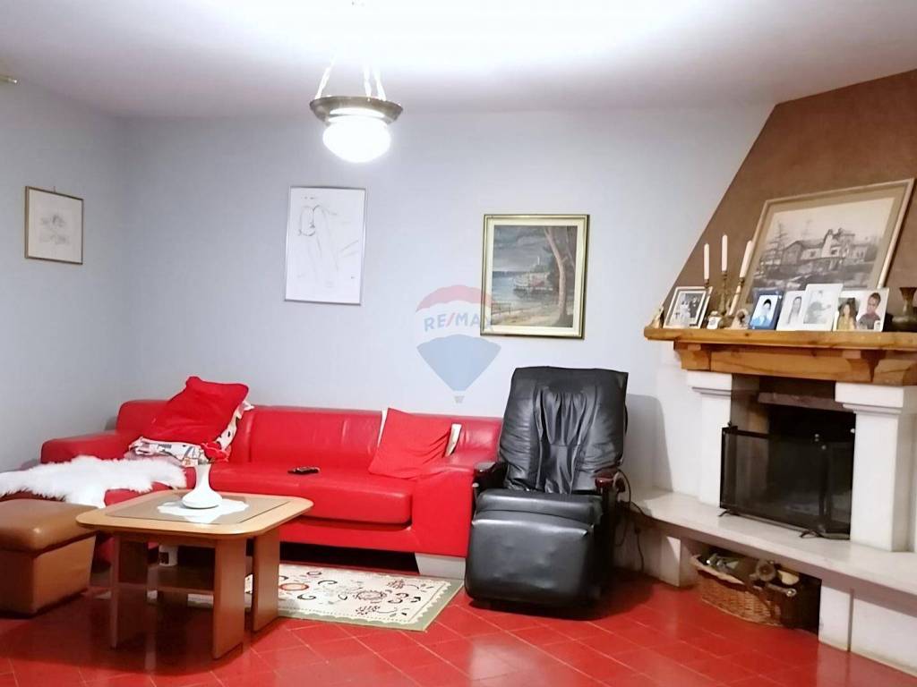 Heating is provided by a central oil heating system, while additional comfort is ensured by a fireplace, a pellet stove, and an air conditioning unit.