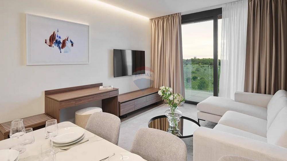 RE/MAX Centar nekretnina presents a stylish studio apartment with a surface area of 31.70 m², located on the third floor of a luxurious aparthotel in a peaceful part of western Istria, just steps from the sea.