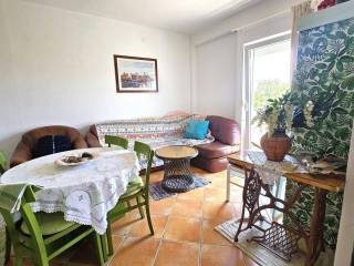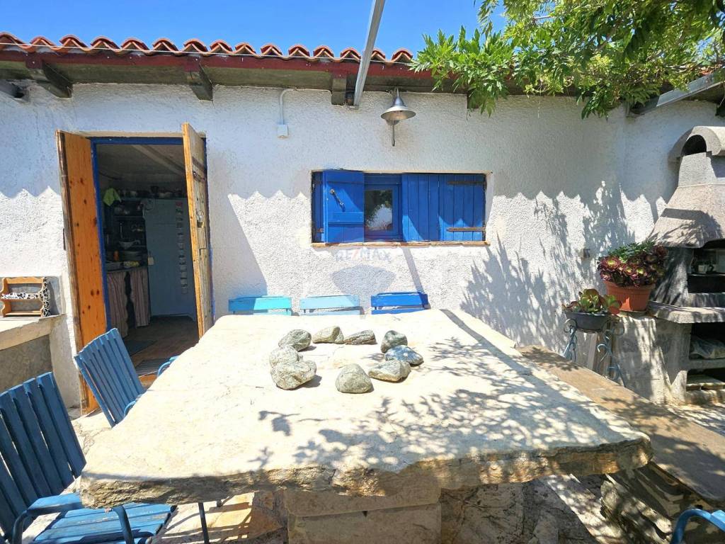 It consists of four bedrooms, two bathrooms, two kitchens with dining and living areas, a hallway, a veranda, two loggias, and three terraces. The terraces offer a beautiful, open view of the sea and surrounding landscape, adding to the sense of relaxation and connection with nature.