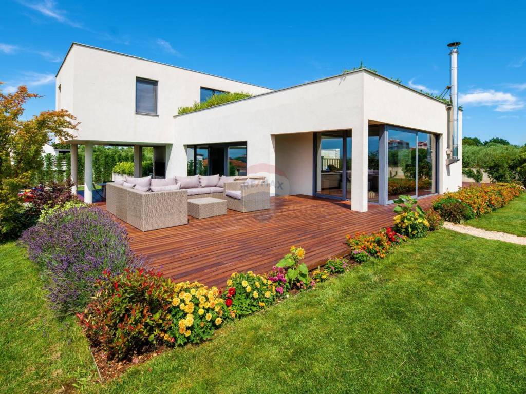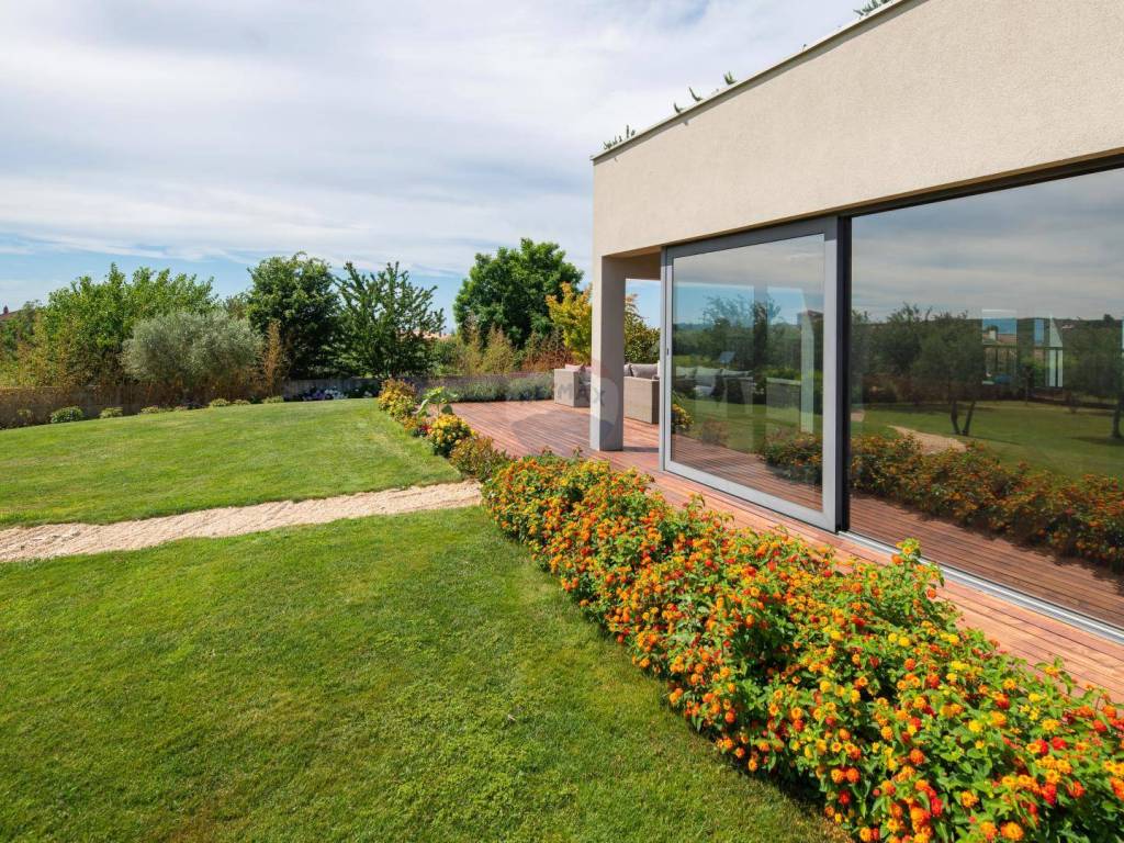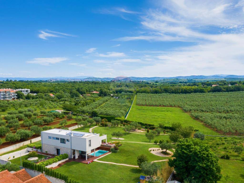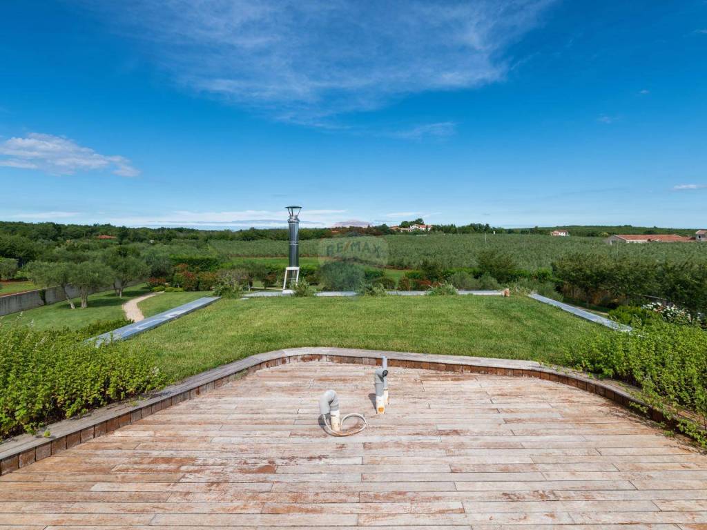 In a quiet location with a beautiful view of the nearby olive groves and the deep blue sea where the view reaches far to Umag is located this beautiful dream villa surrounded by a fairytale garden of 5000 m2.