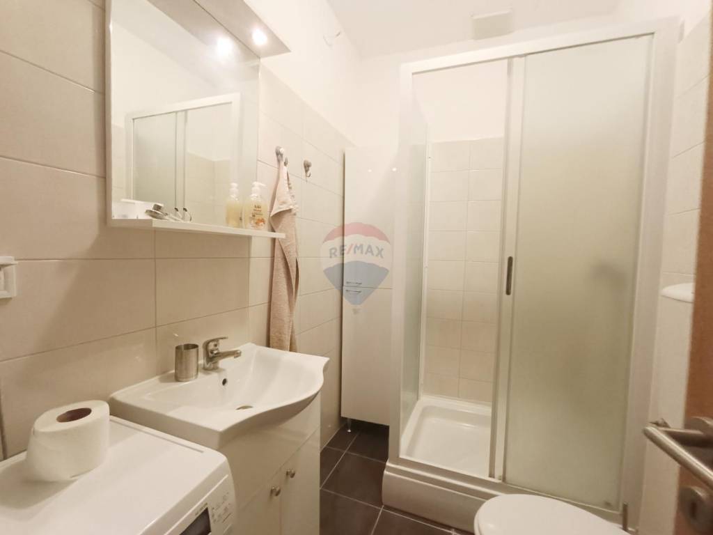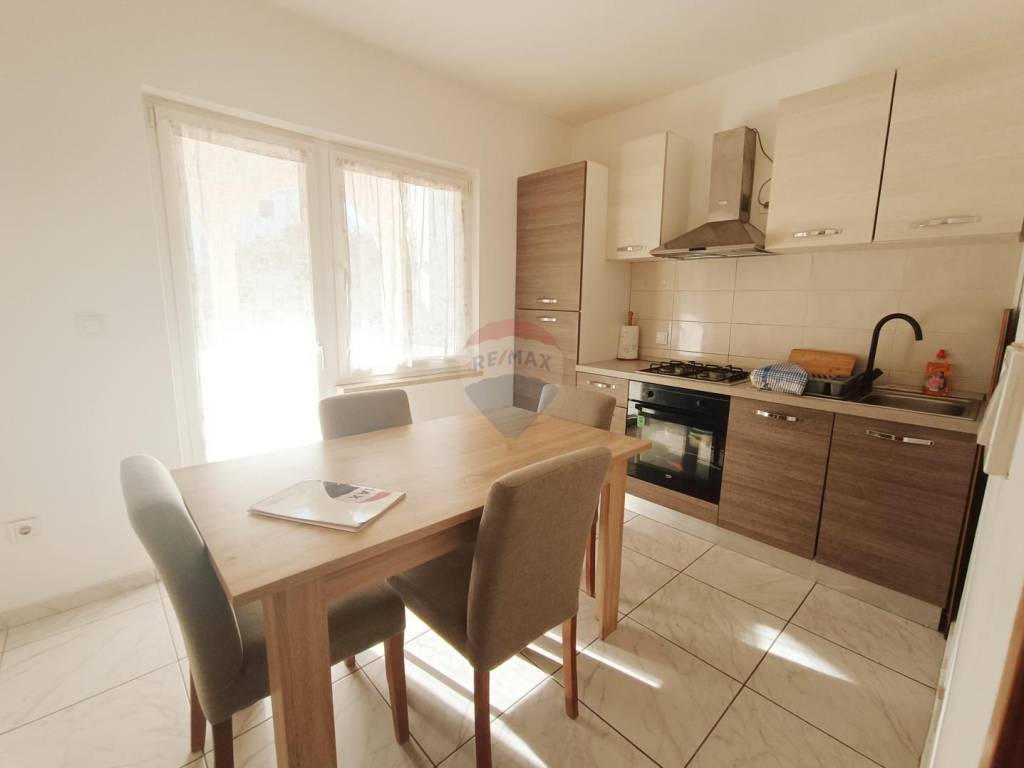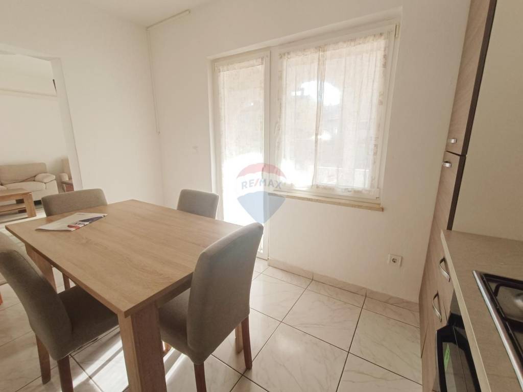We are selling a large, furnished apartment in a quiet street, 800 meters from the beautiful beaches. The apartment consists of a small living room, kitchen with dining room, three bedrooms and a bathroom. Two bedrooms have access to the terrace, and one has its own separate bathroom. The third bedroom used to be part of a large living room, and with very little investment it can be returned to its former state, which would result in an excellent apartment with two large bedrooms, ideal for a larger family. The living room and the kitchen also lead to a large terrace, and since it is ideally oriented, the apartment has a lot of sun and light throughout the day.