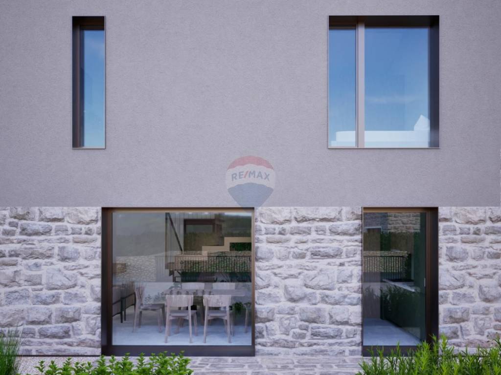 U prizemlju se smjestila kupaona za goste, vešeraj , kuhinja s blagovaonom te velika dnevna soba u open space konceptu. Na okućnici kvadrature 800 m2 smjestio se bazen te ljetna kuhinja s nadstrešnicom za uživanje u ljetnim mjesecima.