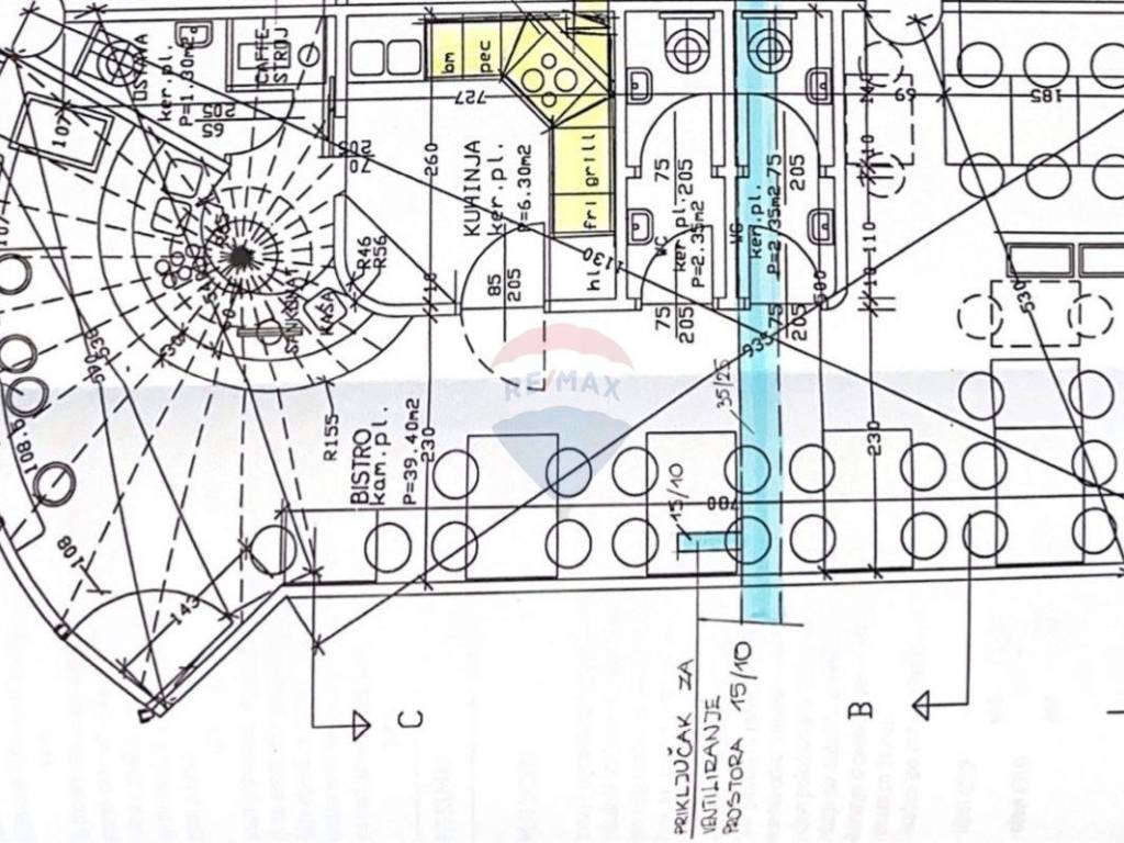 Prostor se sastoji od jedne veće prostorije i toaleta za djelatnike, dva toaleta za goste i prostora predviđenog za kuhinju.