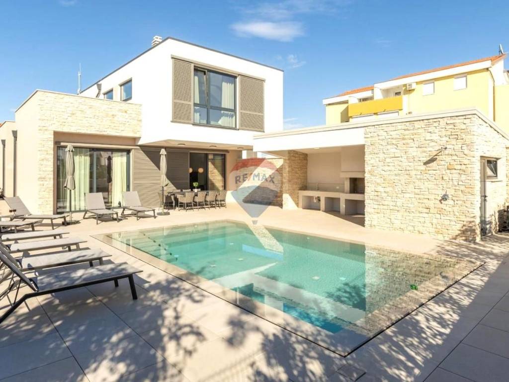 RE/MAX Centar nekretnina proudly presents an impressive, exclusive villa of superior quality, built in 2025, located just 1.5 km from the centre of Umag and its well-maintained city beaches. This modern property was designed without compromise, using only top-quality materials, equipment and furnishings, with every detail carefully crafted to ensure maximum comfort, style and a true sense of luxury.