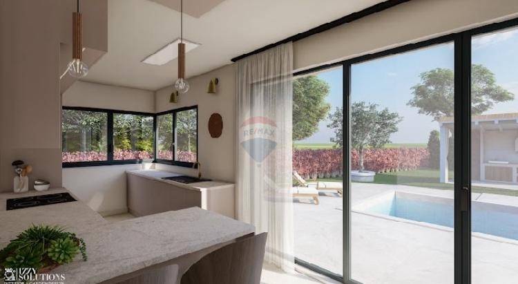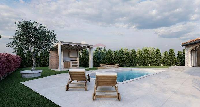 The large covered outdoor kitchen area with grill is perfect for summer barbecues and outdoor entertaining. The villa will be decorated in a timeless style, considering that natural materials, stone and wood will be used.