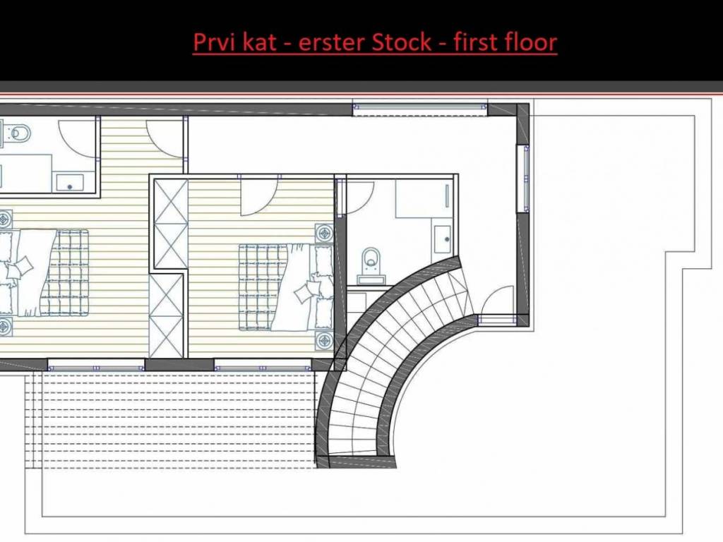 On the first floor there are two bedrooms, two bathrooms, a hallway, spacious terraces with a beautiful view.