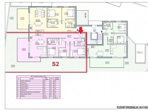 Apartment for sale marked TS-S2, located on the ground floor of a building consisting of a ground floor and three floors, a total of 8 apartments.