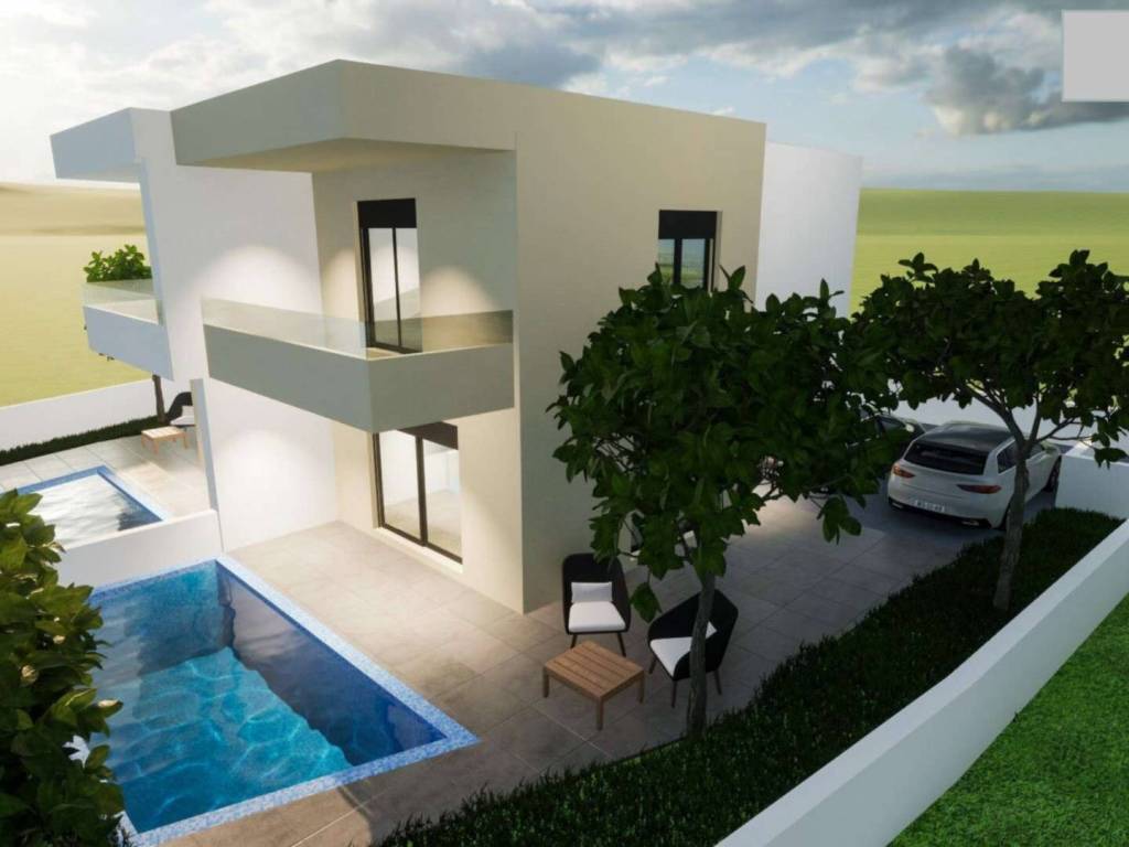 On the upper floor there is a hall, 3 bedrooms, bathroom and covered terrace.