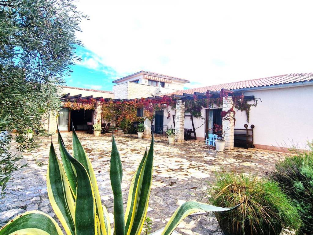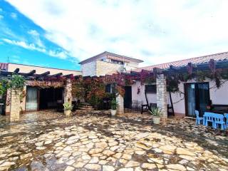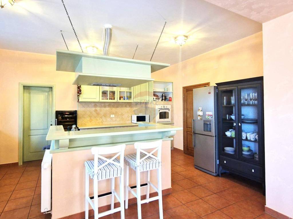 The interior of the house exudes warmth and style. In the living area there is a spacious brick shabby chic kitchen with practical storage, a dining room with a table for eight people and a living room decorated with a wood-burning fireplace. Rustic wooden beams add to the pleasant ambience, perfect for relaxing on winter evenings. From the living room and dining room there is access to a landscaped yard with a wooden pergola, where, along with flowers and herbs, olive trees are planted.