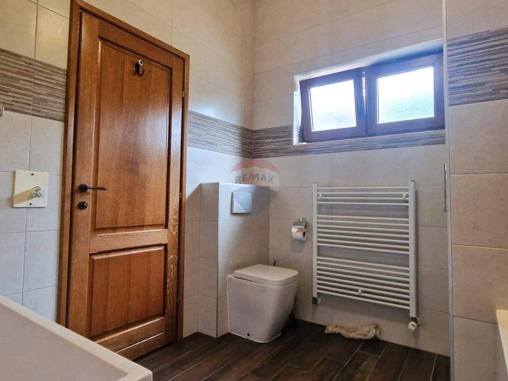 The night part of the house is accessible via a long corridor where there is a guest toilet. There are also two spacious bedrooms, each with its own bathroom. One of the rooms has a direct exit to the garden. On the first floor of the house there is a master bedroom with a private bathroom and a spacious terrace that offers a panoramic view of the surrounding olive groves, the sea and romantic sunsets.
