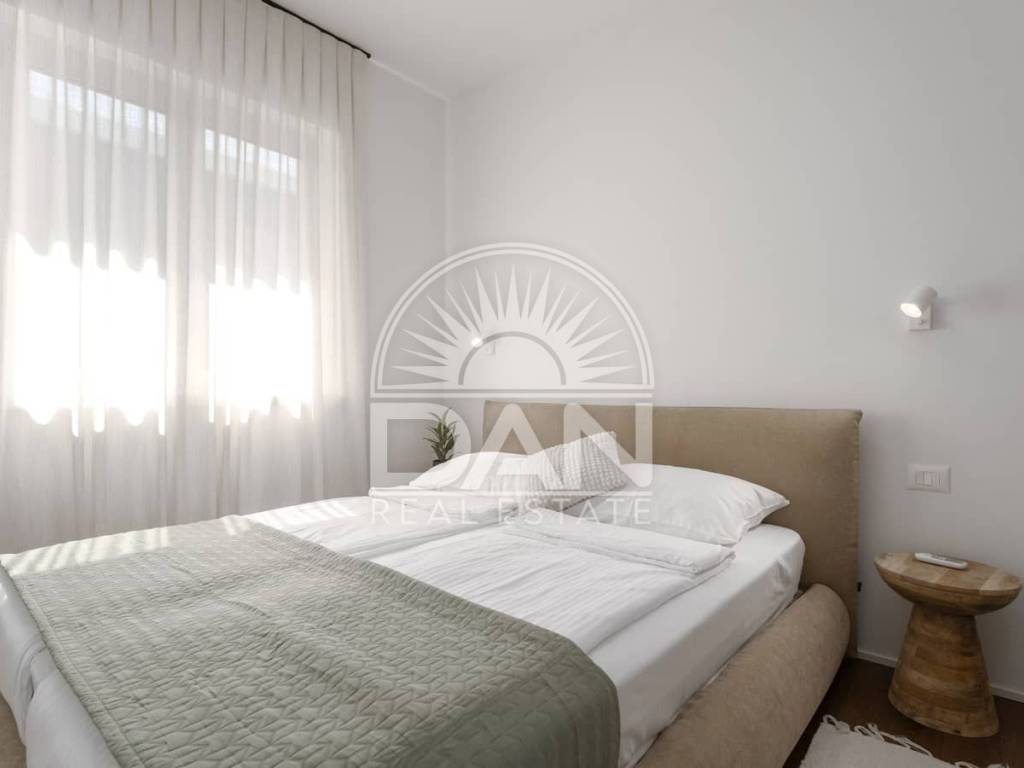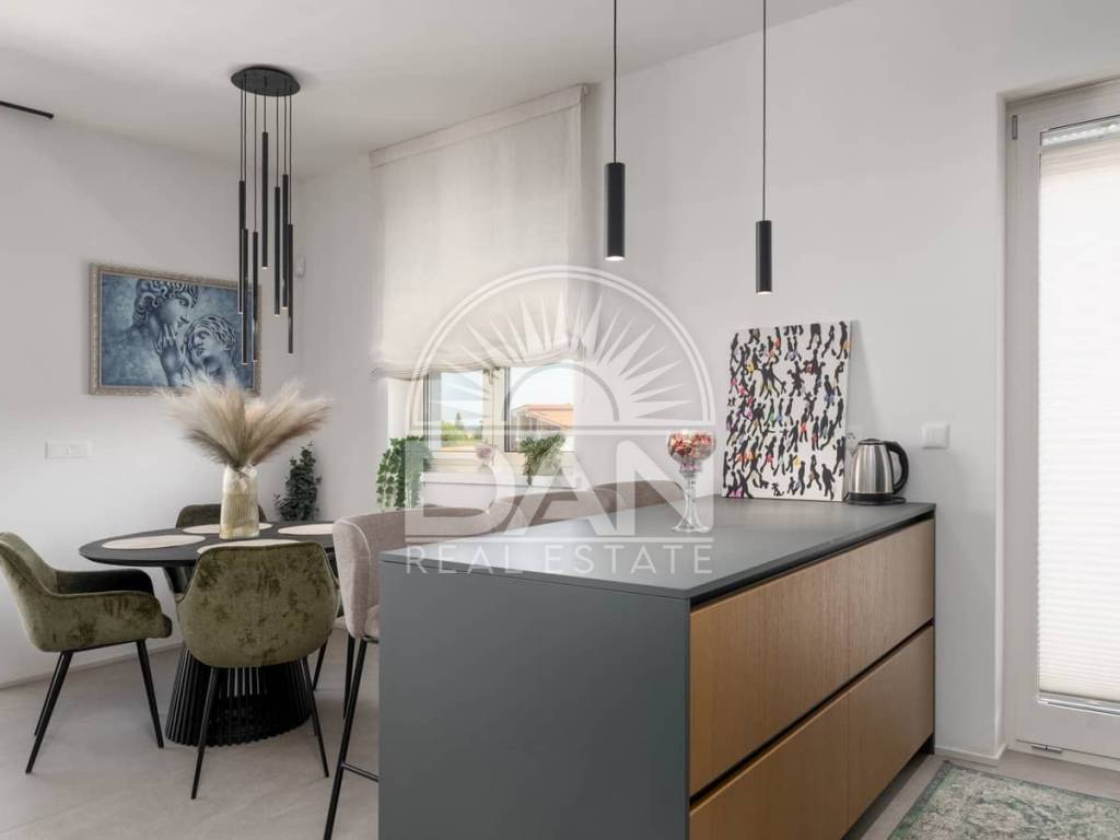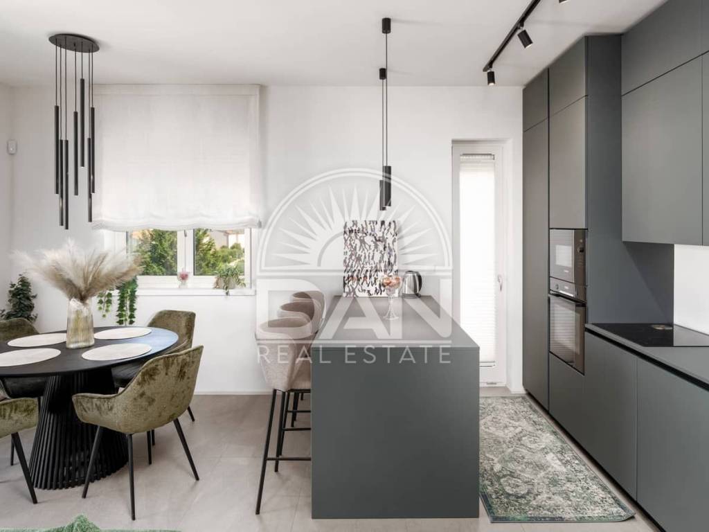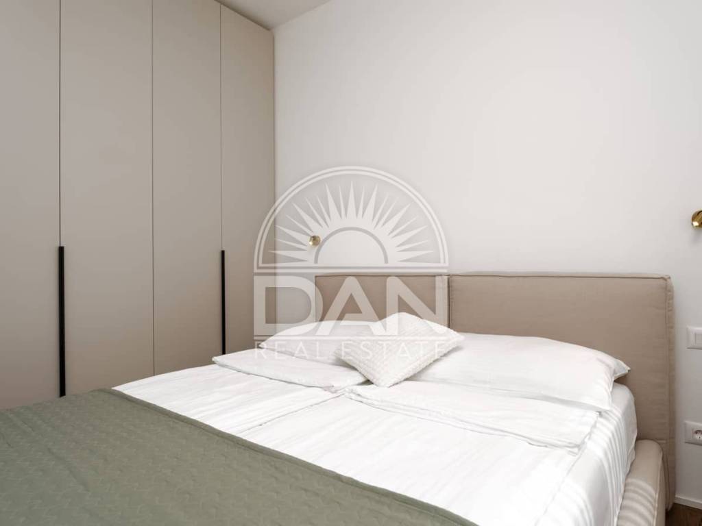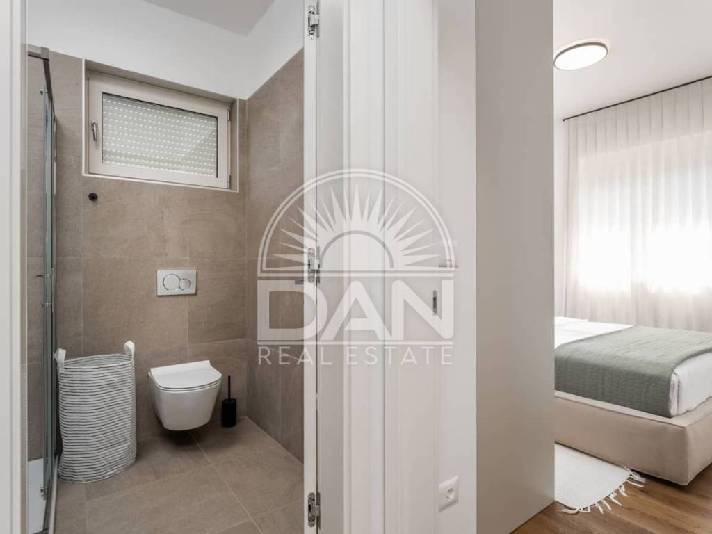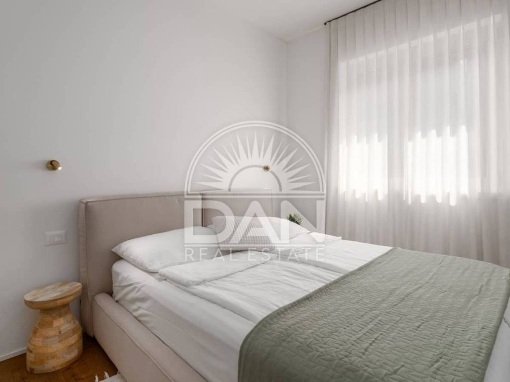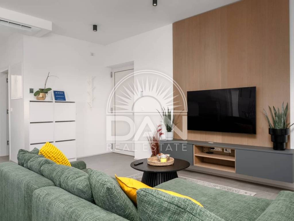 For sale is an elegant and fully furnished apartment situated on the first floor of a modern residential building, in a highly sought-after location close to the sea and all key amenities. The apartment has a total area of 70 m² and is designed for maximum comfort and functionality. It consists of an entrance hall, a spacious living room connected with the kitchen and dining area, two bedrooms and two bathrooms. Additional features include a private storage room in the basement and a designated parking space in front of the building. Air conditioning provides heating and cooling year-round, and underfloor heating adds extra comfort. The property is modernly and tastefully furnished and is being sold fully equipped – ready for immediate move-in without additional investment. Thanks to its excellent location, high quality and comfort, this apartment is a superb opportunity both for peaceful family living and for successful tourist rental.