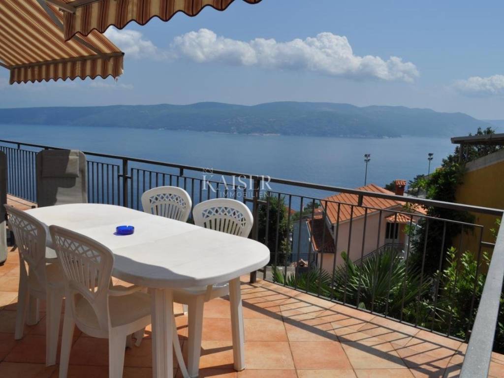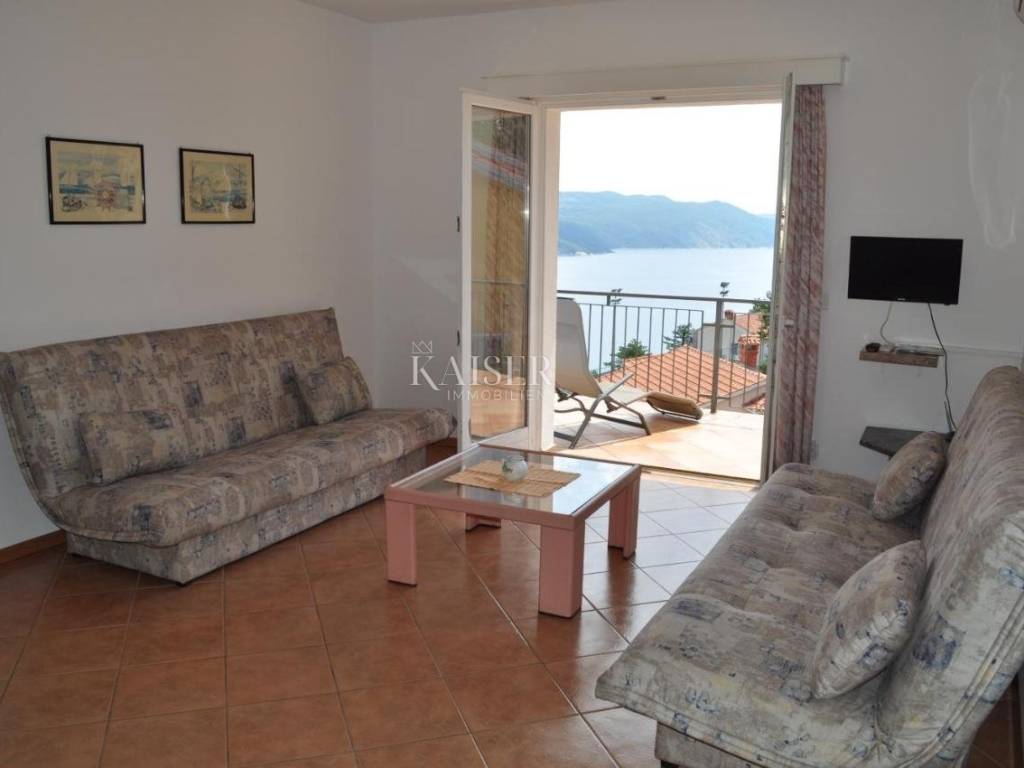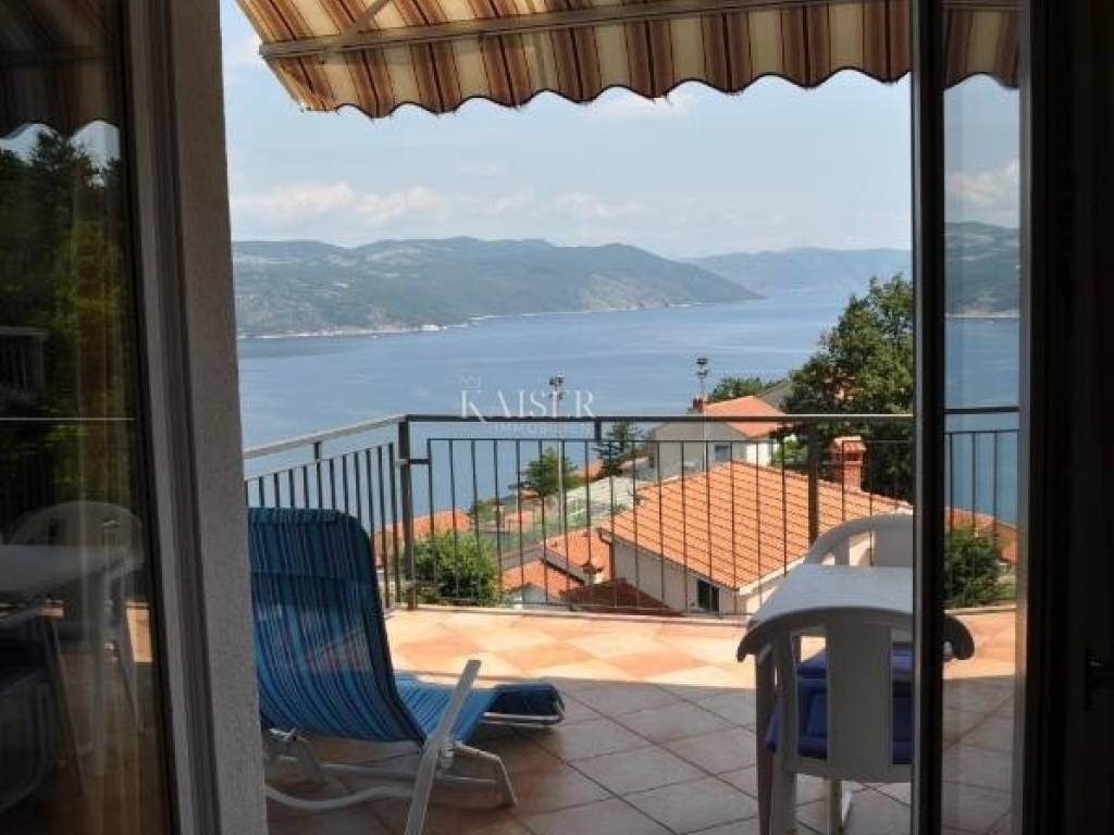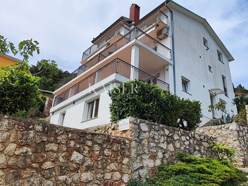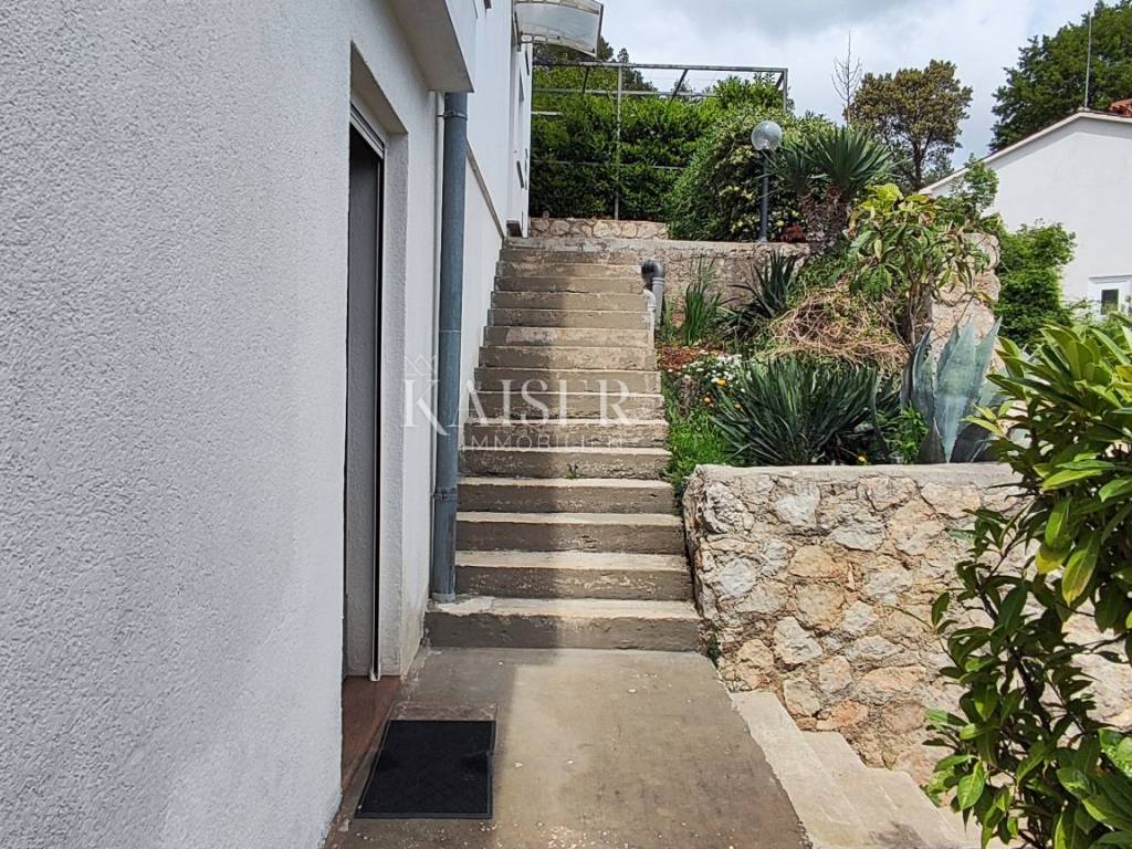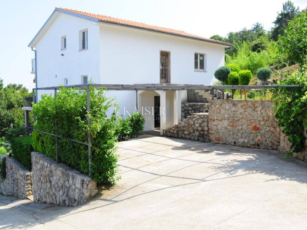 Kaiser Immobilien presents an excellent opportunity in a highly sought-after location. The property is located in a very quiet place with a panoramic view of the sea. It is located only 15 minutes away from the city facilities. The house consists of 368 m2 of living space and is located on a plot with a total square footage of 835 m2. It consists of a basement, ground floor and two floors. The basement was used as a tavern. It offers a space for socializing, a kitchen, a bathroom and a fireplace. Total square footage 30 m2. It offers an exit to the garden and a handful of possibilities. On the ground floor there is a newly renovated and very well used apartment, consisting of two bedrooms, a bathroom, a kitchen and a living room with a terrace and a storage room. Total square footage 95 m2. There are three separate units on the first floor. The apartments consist of a bedroom, a living room and a kitchen with access to a private terrace and a bathroom. The apartments need minimal renovation for aesthetic reasons. In terms of tourist rentals, they achieve excellent results due to their unique location and sea view. On the second floor there is a ROH-BAU apartment with its own terrace. The apartment consists of 125 m2. The apartment offers a unique view and offers various possibilities to the new owner. This unique property is surrounded by nature and beautiful views of Cres and the sea. Great opportunity to buy a family home or investment. For more information contact the agent.