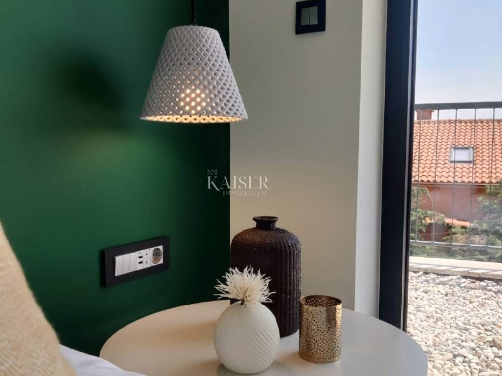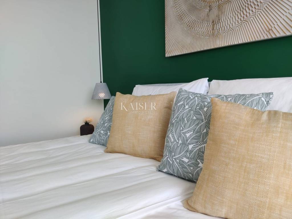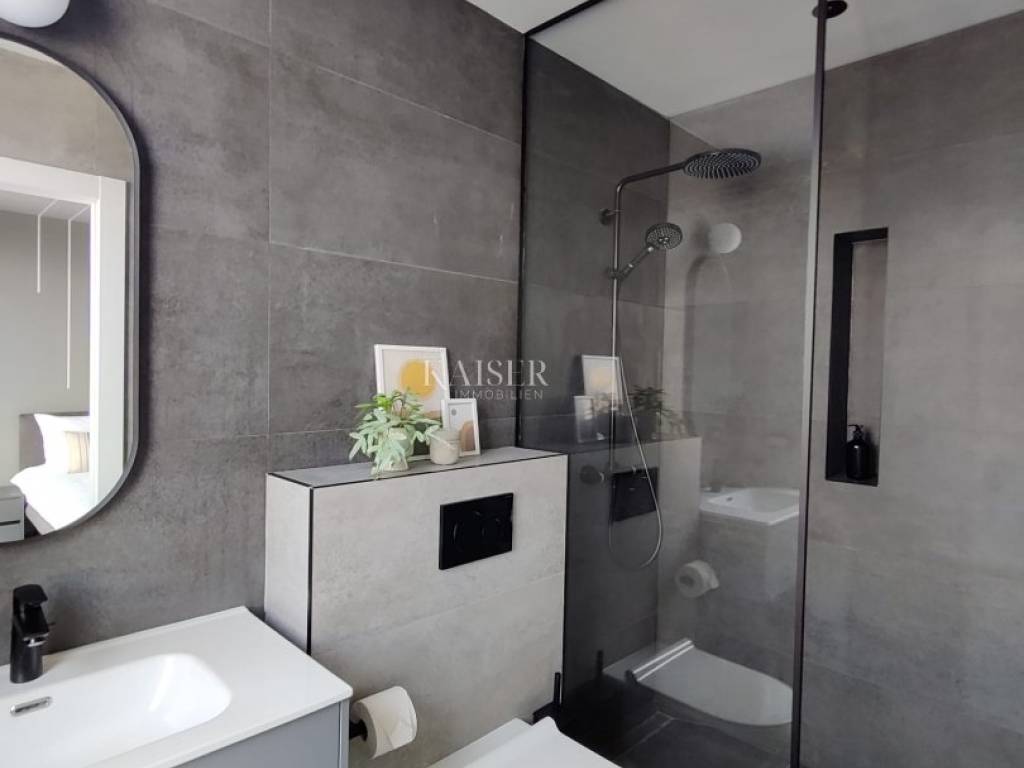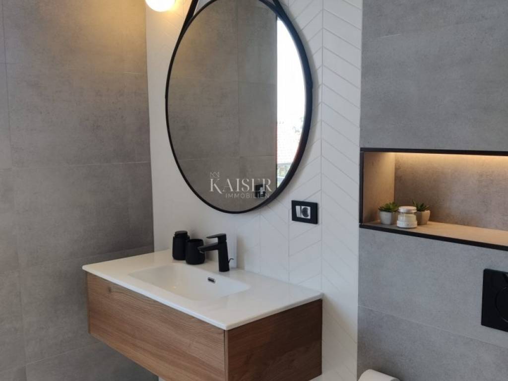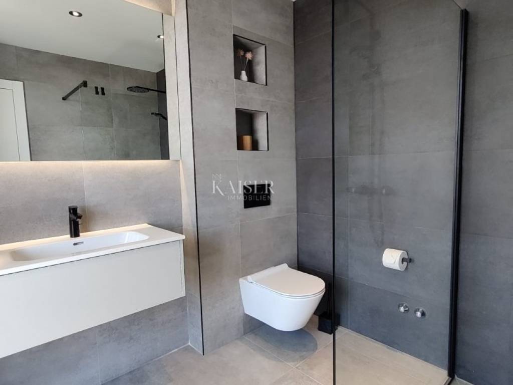 Kaiser Immobilien presents you a unique modern villa on the Opatija Riviera, just a few minutes by car from Opatija, an elegant and historically significant tourist destination with the longest tradition in Croatian tourism. Villa characteristics: Area: 290 m2, spread over three floors. Construction: Top quality materials and high standards. Heating: Central floor heating. Security: Alarm system. Swimming pool: A system for cleaning the pool using salt electrolysis. Rooms: Bedrooms: 4 rooms, each with its own bathroom. Upper floor: Open space with kitchen, dining room and large living room with access to the terrace with pool and beautiful view of Kvarner. Lower floors: Private part with bedrooms with bathrooms, sauna, fitness room and laundry room. Special features: Roof terrace: Unobstructed view of the Kvarner Bay and the city skyline of Rijeka. Yard: Decorated with enough space to enjoy the greenery of Mediterranean plants. Parking: Several parking spaces in front of the villa. Additional Information: Large glass walls provide spaciousness and light in all rooms, while stylish custom-made furniture adds to the comfort and luxury of this villa. Do not miss the opportunity to become the owner of this unique property in one of the most desirable locations on the Adriatic. For more information and to arrange a viewing, feel free to contact the agent at +385 995677888 or at email: info@kaiser-immobilien.hr Kaiser Immobilien - Your partner for luxury real estate. Distance of the property from EU cities: Munich: 533 km Vienna/Vienna: 514 km Prague: 840 km Budapest, Hungary: 595 km