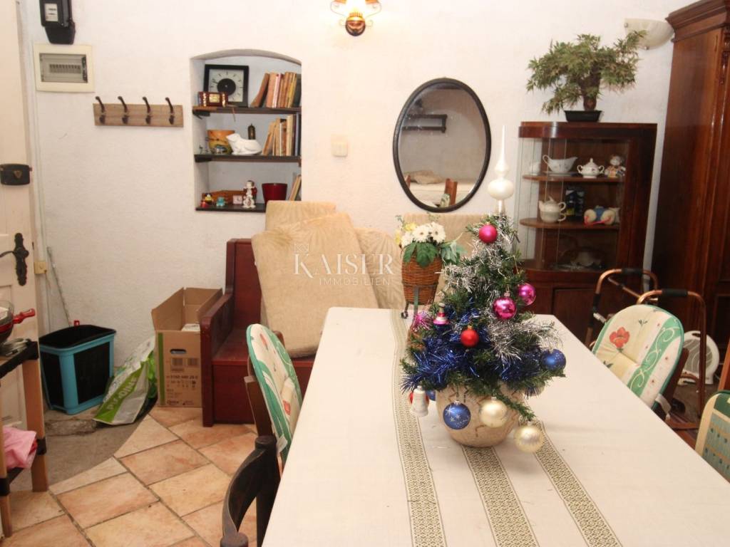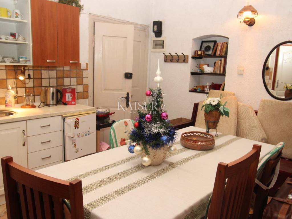 In the old center II row to the sea Kaiser-immobilie offers a one-room apartment on the first floor of an older building with only 3 apartments. The apartment consists of: hallway, bathroom with toilet, kitchen with dining room and living room, bedroom and on the ground floor a larger tavern of approx. 15 m2. The apartment also includes a small part of the garden. The first beaches and the sea are all 3 minutes' walk away. All facilities such as a shop, bus station, newsstand, coffee bar, restaurant, etc. are within a 5-minute walk from the location. The location is far from major cities: Rijeka 20 minutes drive, Zagreb 1 hour 30 minutes, Vienna 5 hours, Berlin 10 hours, Trieste 1 hour 30 minutes, Ljubljana 1 hour 40 minutes, Pula airport 1 hour 30 minutes, Krk airport 40 minutes. For all inquiries, please contact your agent Eli Lovko tel. 0916133776 call Croatia +385 Agency commission is 3%+VAT