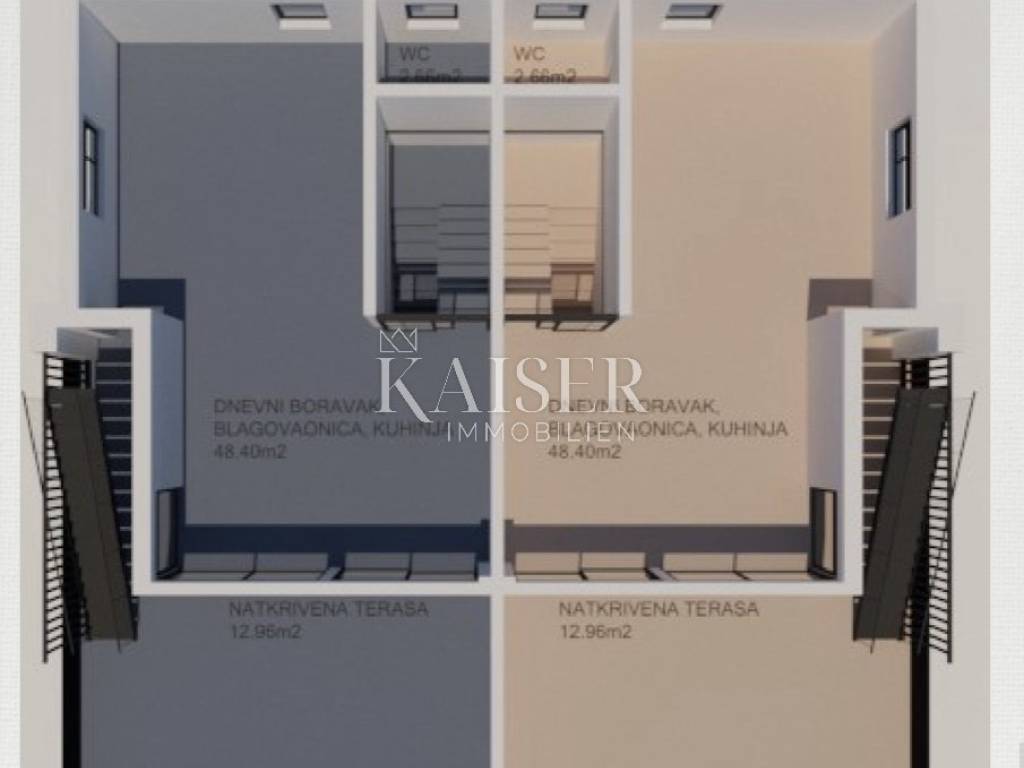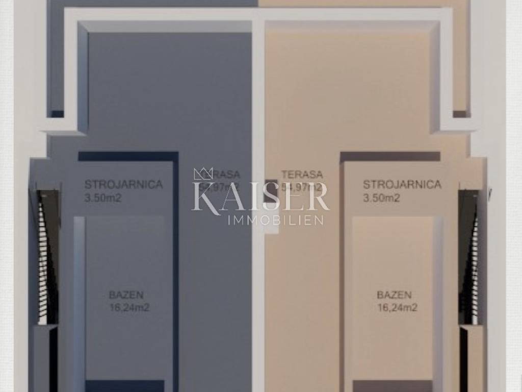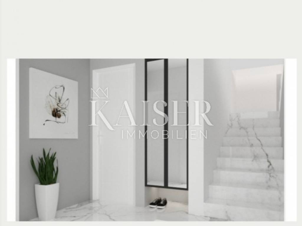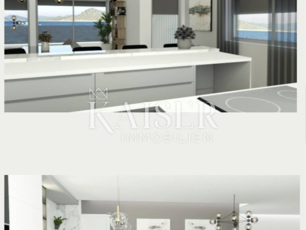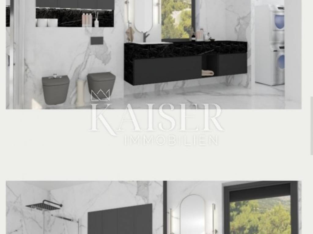 Kaiser Immobilien offers a luxurious two-story apartment in a smaller residential building. In 110 m2, there are three bedrooms, two bathrooms, a toilet, a hallway, a large living room with a kitchen from which there is access to a covered terrace and a balcony. The apartment offers an open view of the sea. What makes this property attractive is the roof terrace and the pool, which together have about 80 m2. Two parking spaces belong to the apartment. The property is currently under construction and the completion of the works is planned in June 2023.