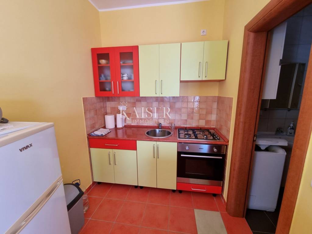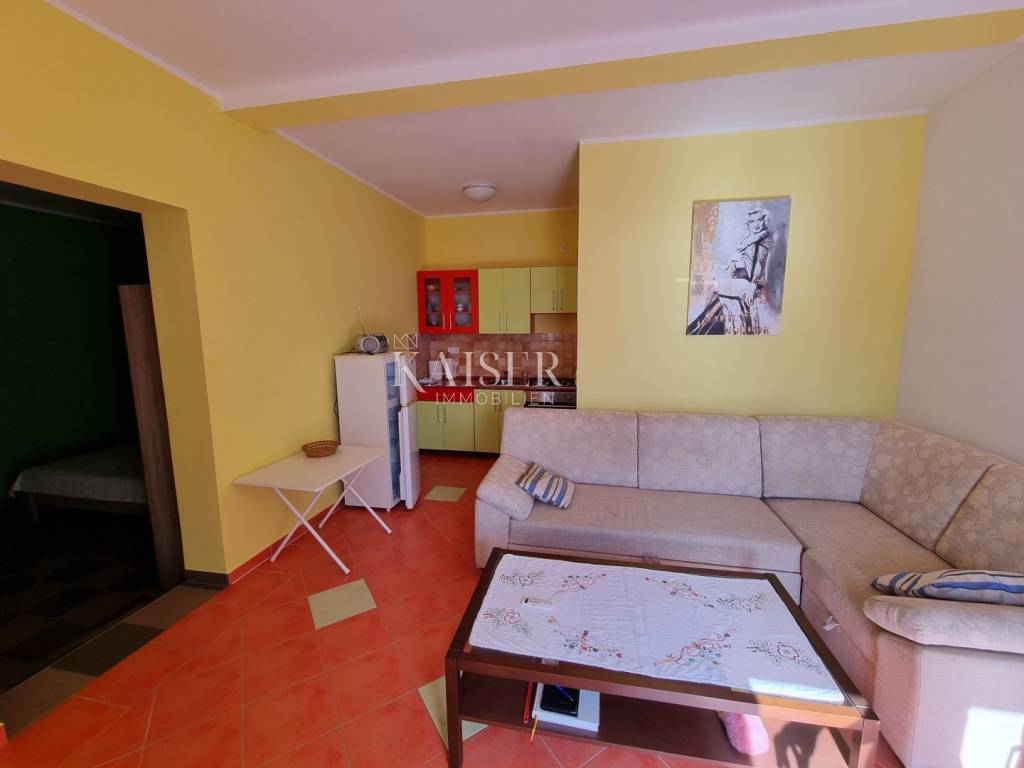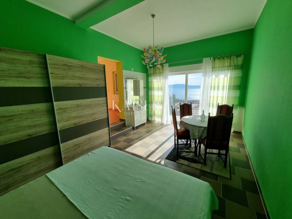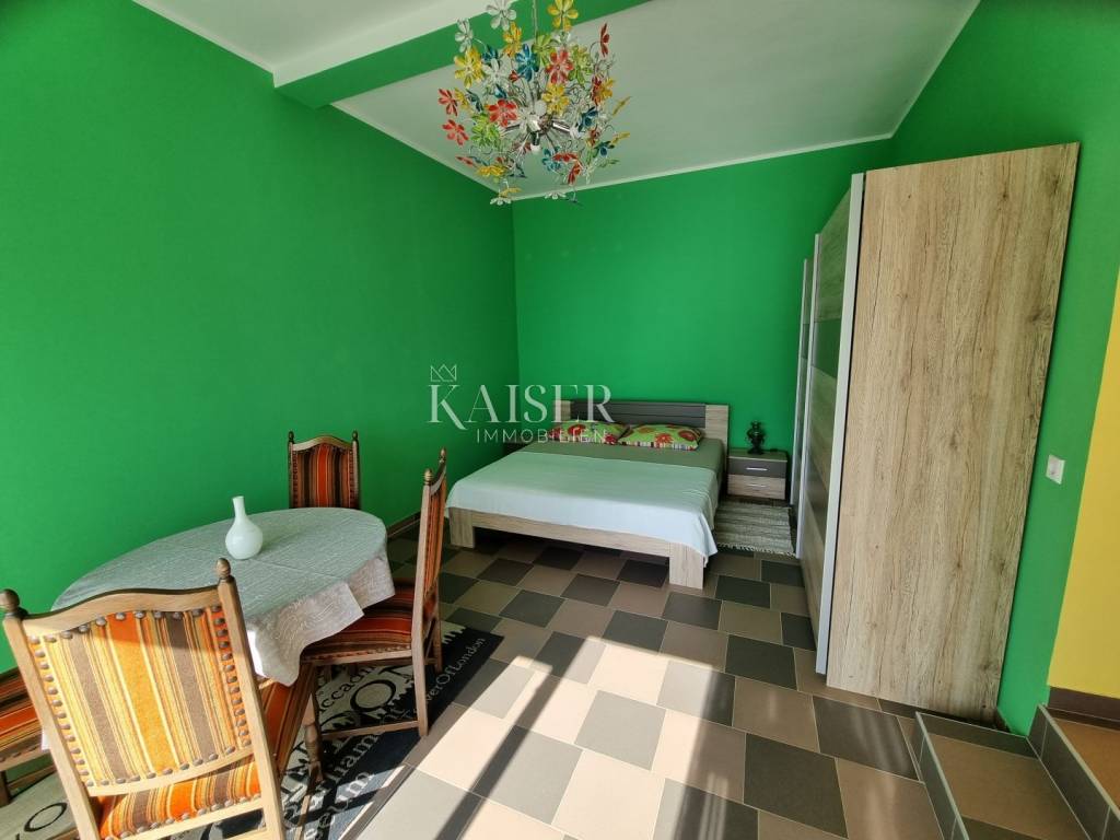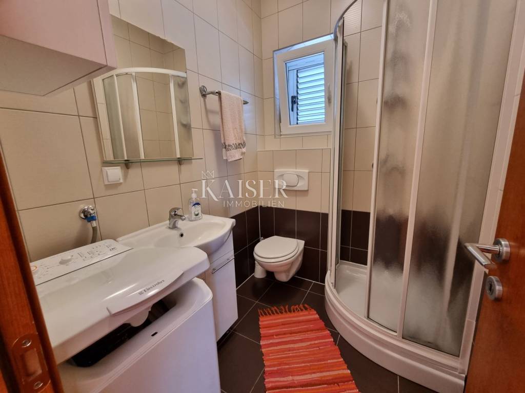 Kaiser Immobilien mediates the sale of a beautiful house near Novi Vinodolski, in the quiet settlement of Klenovica. The house consists of two apartments, arranged as apartments with a total area of 210m2. On the ground floor is the first apartment, which consists of one bedroom, living room, kitchen and bathroom. The second apartment is located on the first floor and consists of a spacious living room, kitchen, two bedrooms, bathroom, and a spacious terrace of 30 m2 with a wonderful view of the sea and the island of Krk. The yard and yard is beautifully landscaped with Mediterranean plants and greenery, providing a peaceful environment and a sense of privacy. There are two parking spaces in the garden, a large garage for one to two cars, and an outdoor parking opposite the house. Behind the house there is a space for socializing and barbecuing. The location of this property is extremely favorable, considering the proximity to beaches, restaurants and all other facilities that Klenovica offers. The distance from the sea is 500m.
