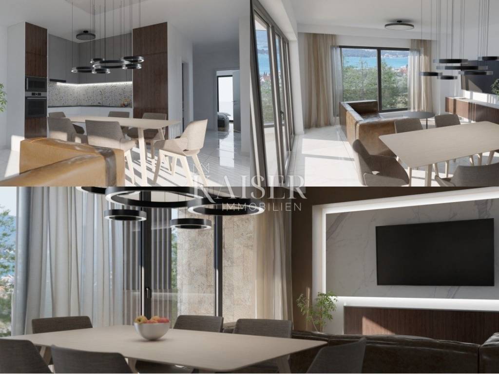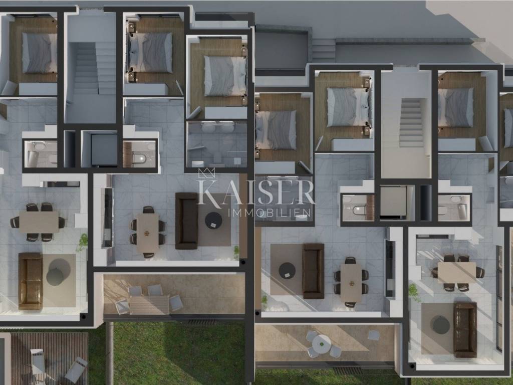 Kaiser Immobilien is offering: Luxurious apartment with garden and terrace. The offer includes a spacious apartment on the ground floor of a two-story building, with a total area of 85.58 m², located in a quiet environment of the small Dalmatian town of Sv. Filip i Jakov near Biograd na moru, 20 km from the city of Zadar, hidden from traffic jams and noise, in the immediate vicinity of the sea and the town center with all necessary amenities. Surrounded by houses and forests and with a panoramic view of the sea and islands, it is ideal for family life or a tourist investment. Thanks to the large glass walls, the apartment is sunny throughout the day, and high-quality parquet and elegant ceramics with underfloor heating ensure maximum comfort. Full air conditioning in each room further contributes to a pleasant stay throughout the year. The seller offers the possibility of ordering and making custom-made furniture. Completion and move-in is in May 2025. Layout: Hallway (6.64 m²) - spacious and functional entrance area Two comfortable bedrooms (9.86 m² and 9.96 m²) Living room with dining room and kitchen (28.28 m²) - modern and airy open-space concept Bathroom (5.56 m²) + separate toilet (1.74 m²) Covered terrace (8.44 m²) - ideal for relaxation Balcony (2.48 m²) - additional outdoor space Additional amenities of the apartment are a secured parking space and a garden of 10.12 m2 with an outdoor storage room and the possibility of building a swimming pool. Sveti Filip i Jakov is a charming, small seaside town located along the Adriatic coast, known for its beautiful beaches, crystal clear sea and Mediterranean ambiance. It is located near Biograd na Moru and is an ideal place for a quiet life or vacation. Distances: A1 motorway (Benkovac exit) – 20 km Zadar Airport – 25 km National parks: - Kornati (boat trips from the town) - Krka – 50 km - Paklenica – 60 km - Vrana Lake (nature park) – 10 km Excellent connectivity and proximity to natural beauty make Sveti Filip i Jakov the ideal combination of vacation and adventure! For all information and sightseeing, contact us today. Tel.: 00385992510230 Email: marijana.papic@kaiser-immobilien.hr